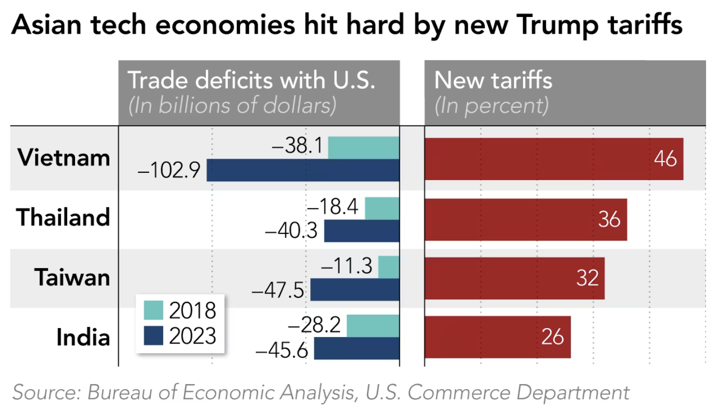 베트남, 태국, 대만, 인도 등은 지난 몇 년간 ‘차이나 리스크’를 피하려는 미국의 요구에 적극 응답해왔습니다. 하지만 결국 그 대가로 정치 논리에 따라 경제적 불이익을 받는 아이러니한 현실에 직면하게 된 것입니다.