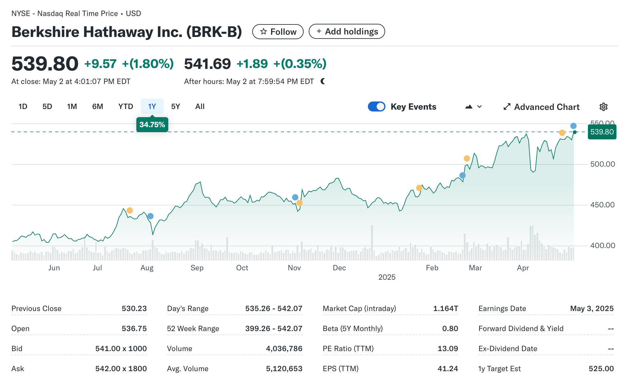 버크셔의 주가는 기업 실적만이 아니라, '버핏이 있다'는 안정감에서 오는 프리미엄도 포함되어 있었습니다.