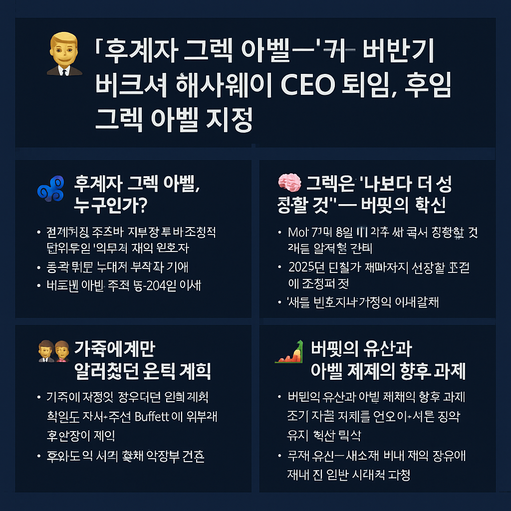 이는 단순한 인사 승계 이상의 의미를 담고 있습니다. 버핏의 경영 DNA가 이제는 아벨을 통해 계승되고 확장될 수 있음을 공식적으로 선언한 순간이기도 했습니다.