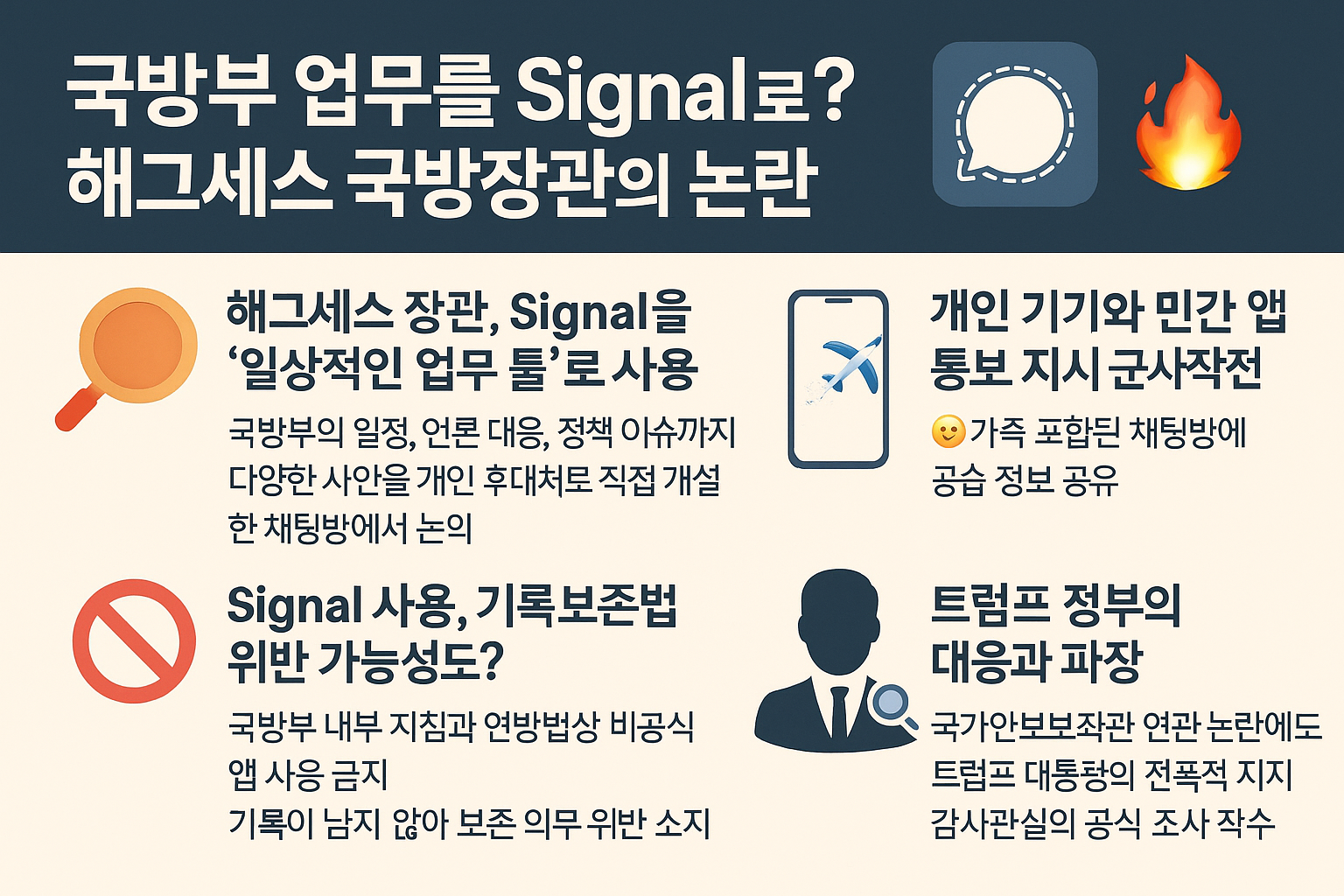 🔍 해그세스 장관, Signal을 '일상적인 업무 툴'로 사용