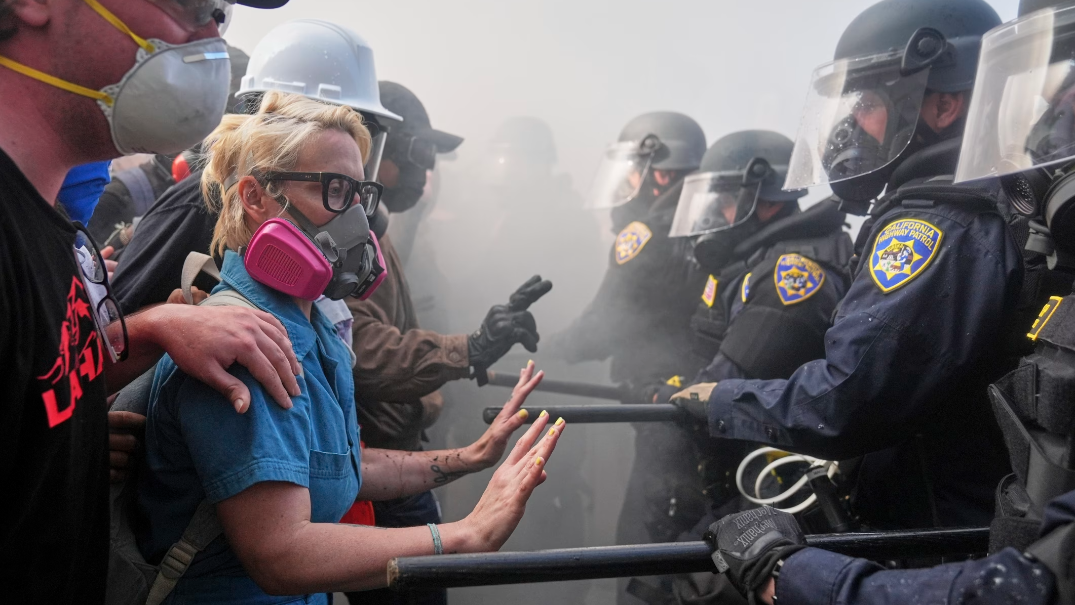일요일 밤, LA 도심은 전쟁터를 방불케 했습니다. 경찰은 최루탄과 고무탄을 발사하며 진압에 나섰고, 시위대는 돌과 폭죽, 전동 스쿠터까지 던지며 격렬히 저항했습니다. 심지어 시위대는 하이웨이 101호선을 점거한 뒤, 고가도로 위에서 경찰 차량에 각종 물체를 투척했습니다.