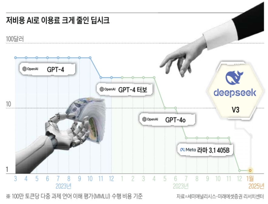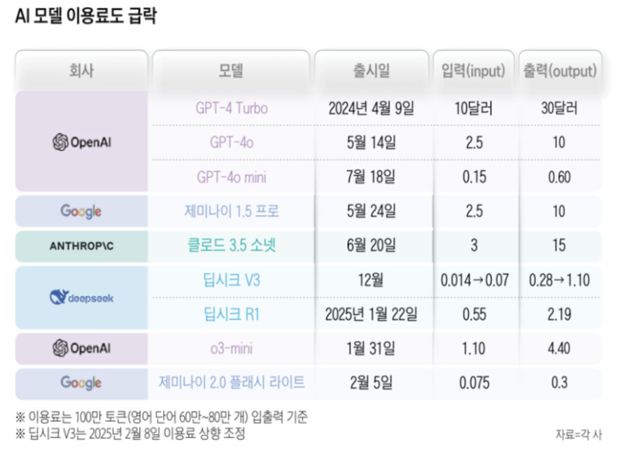 과거에는 대기업이 아니면 대형 AI 모델을 자체적으로 개발하거나 운영하기 어려웠습니다. 하지만 최근에는 저비용 AI 모델이 등장하면서, 중소기업과 스타트업도 비용 부담 없이 AI를 활용할 수 있는 환경이 조성되고 있습니다. - 가격 경쟁 심화