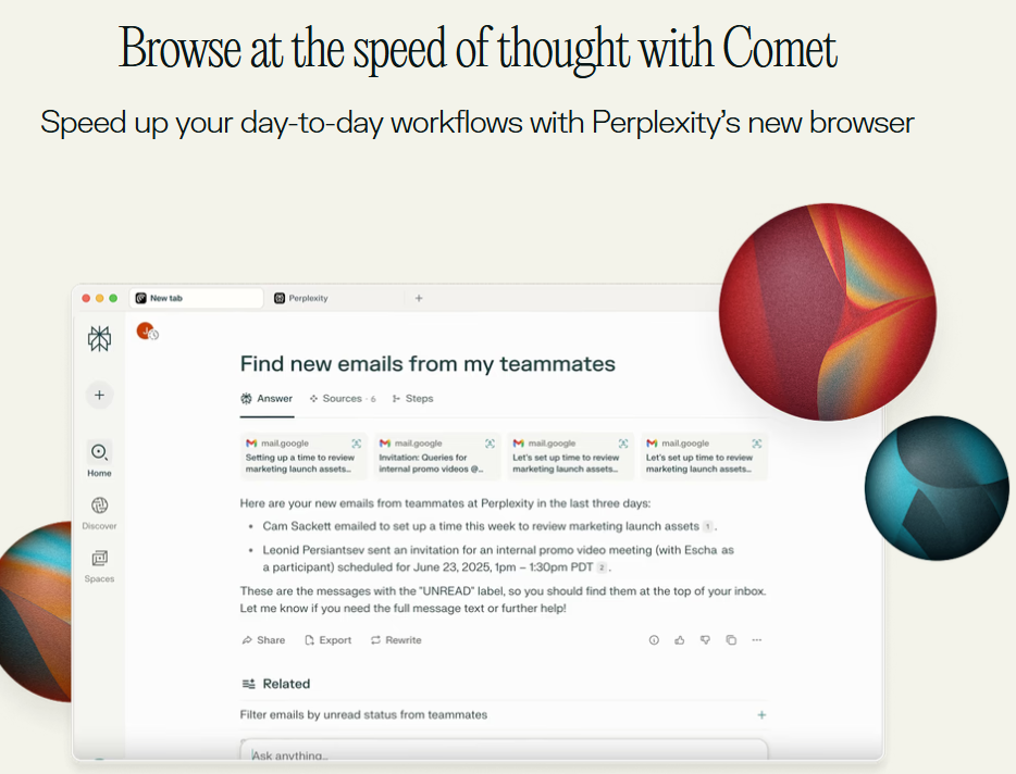 🛰️ 퍼플렉서티의 ‘코멧’ 브라우저와 시너지