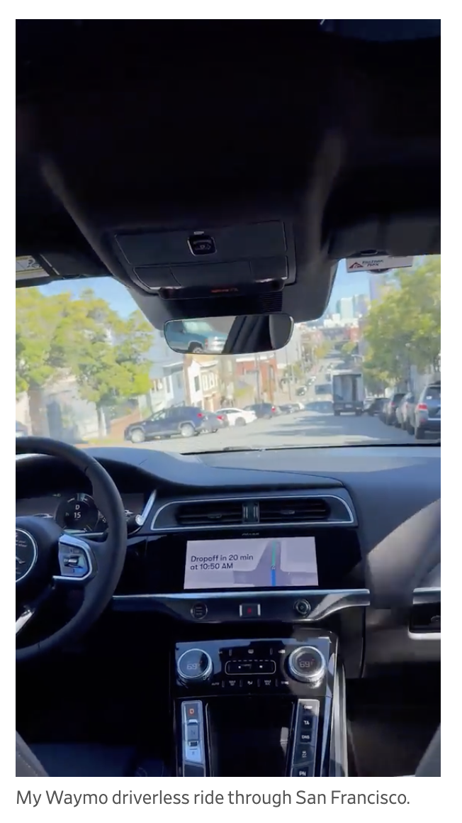 샌프란시스코에서 웨이모를 처음 탄 한 기자는, 약간의 불안함을 느꼈지만 곧 익숙해졌다고 말한다. 주행 중 스마트폰을 보며 목적지에 도착한 그는, 다음 날도 웨이모를 택했다. 운전자 팁이 필요 없고, 대화도 피할 수 있으며, 대기 시간과 가격도 우버와 비슷했기 때문이다.