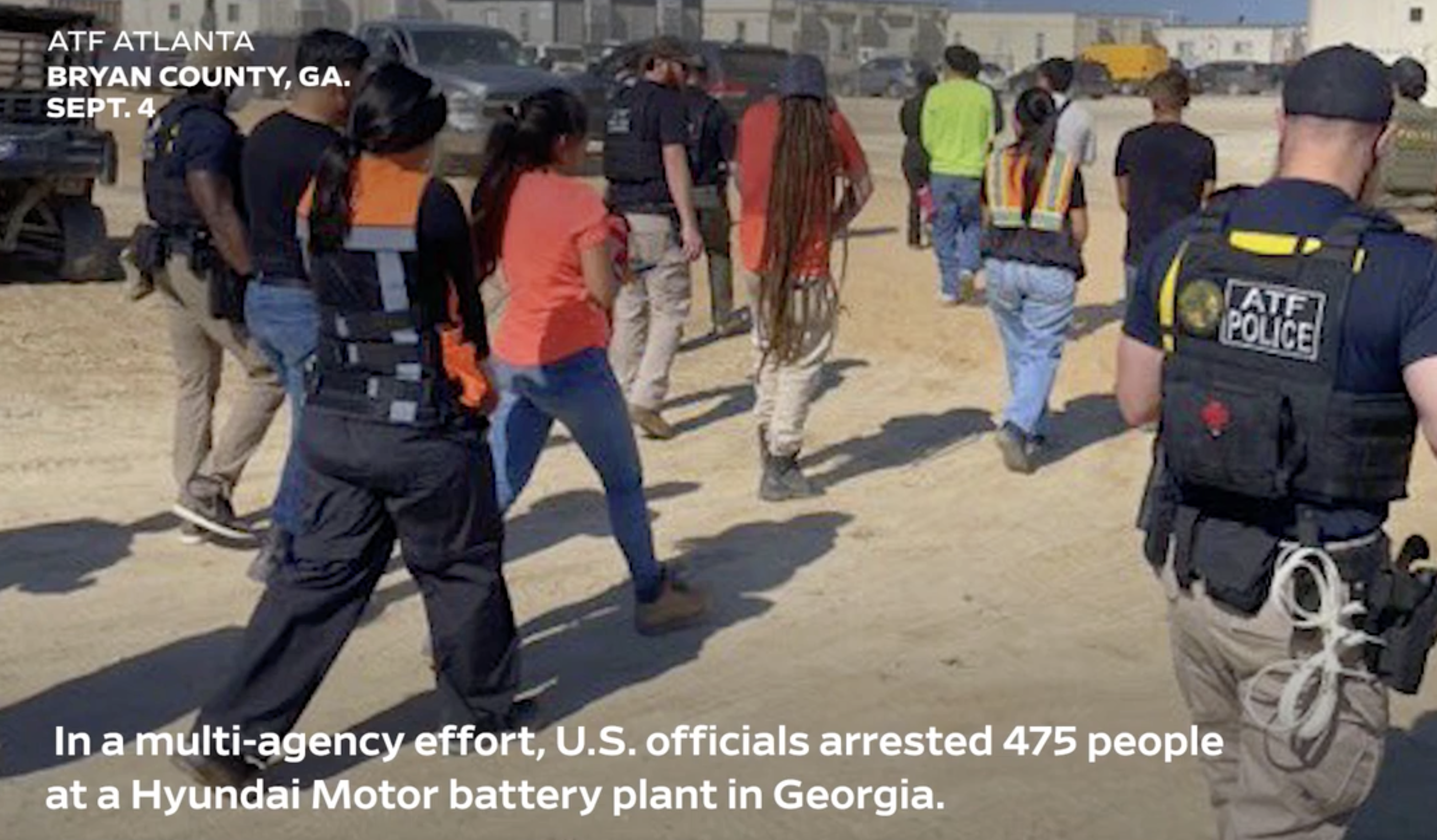 미국 조지아주 사바나 인근에서 건설 중인 현대자동차- LG에너지솔루션 합작 배터리 공장에서 미 당국이 단행한 대규모 불법 이민 단속으로 475명이 체포되었습니다. 이는 미국 역사상 단일 사업장에서 이뤄진 최대 규모의 이민 단속으로 기록됩니다. 체포된 이들 중에는 비자 면제 프로그램을 악용하거나 체류 기간을 초과한 인원들이 다수 포함되었으며, 그중 300명 이상이 한국 국적자인 것으로 알려졌습니다.