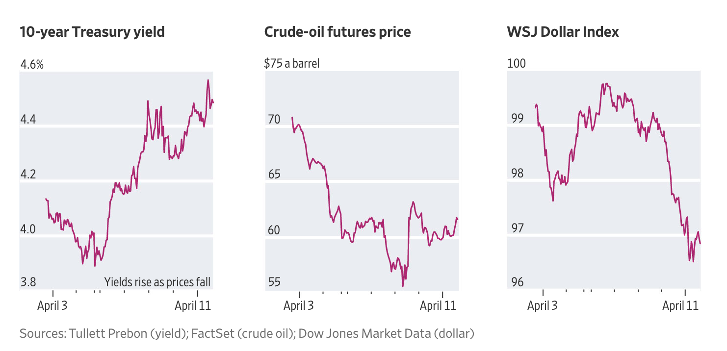 주식 시장은 관세 시행 이후 폭락세를 이어갔고, 심지어 전통적으로 '안전자산'으로 여겨지는 미국 국채 시장에서도 매도세가 나타나는 이례적 현상이 포착되고 있었습니다.