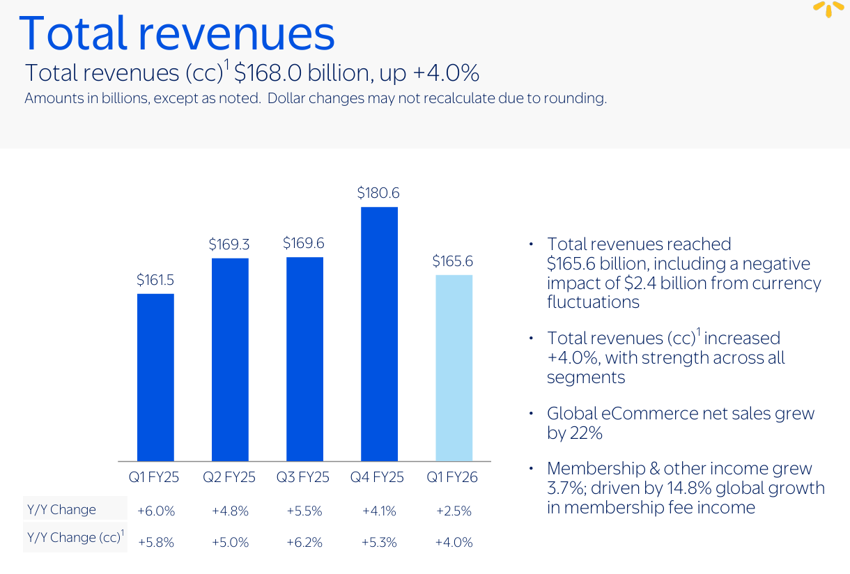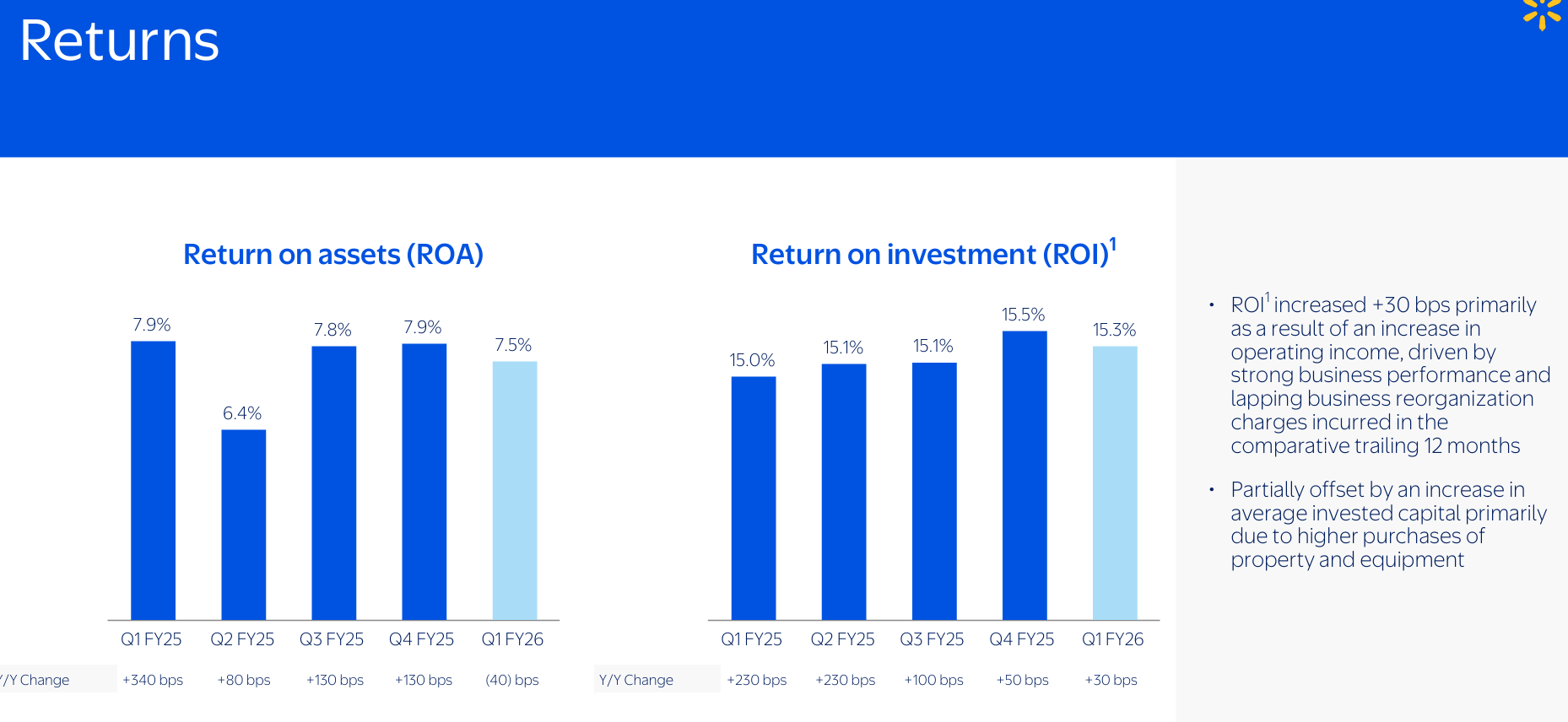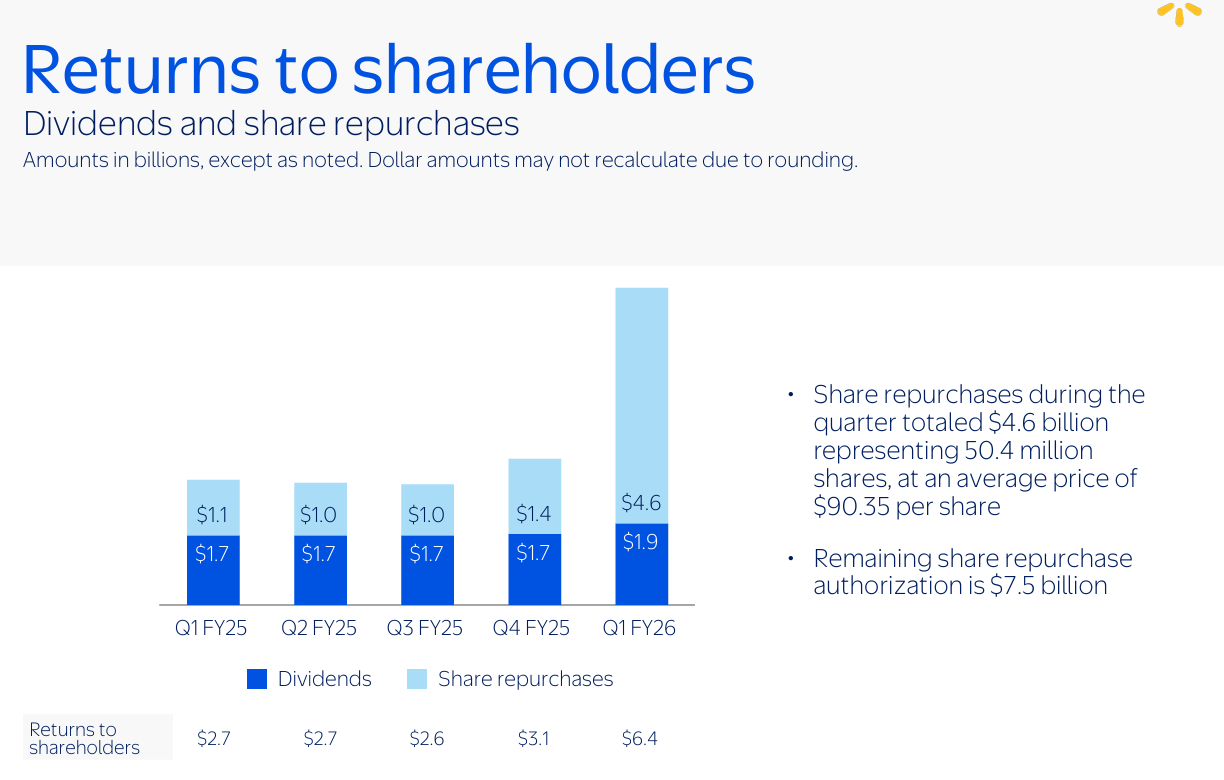 실제로 주식시장이 흔들리고 소비심리가 저하된 3~4월에도 월마트의 실적은 상승했습니다. 이와 같은 탄탄한 실적에 힘입어, 월마트는 올해 전체 매출과 이익 전망치를 변경하지 않고 유지했습니다.