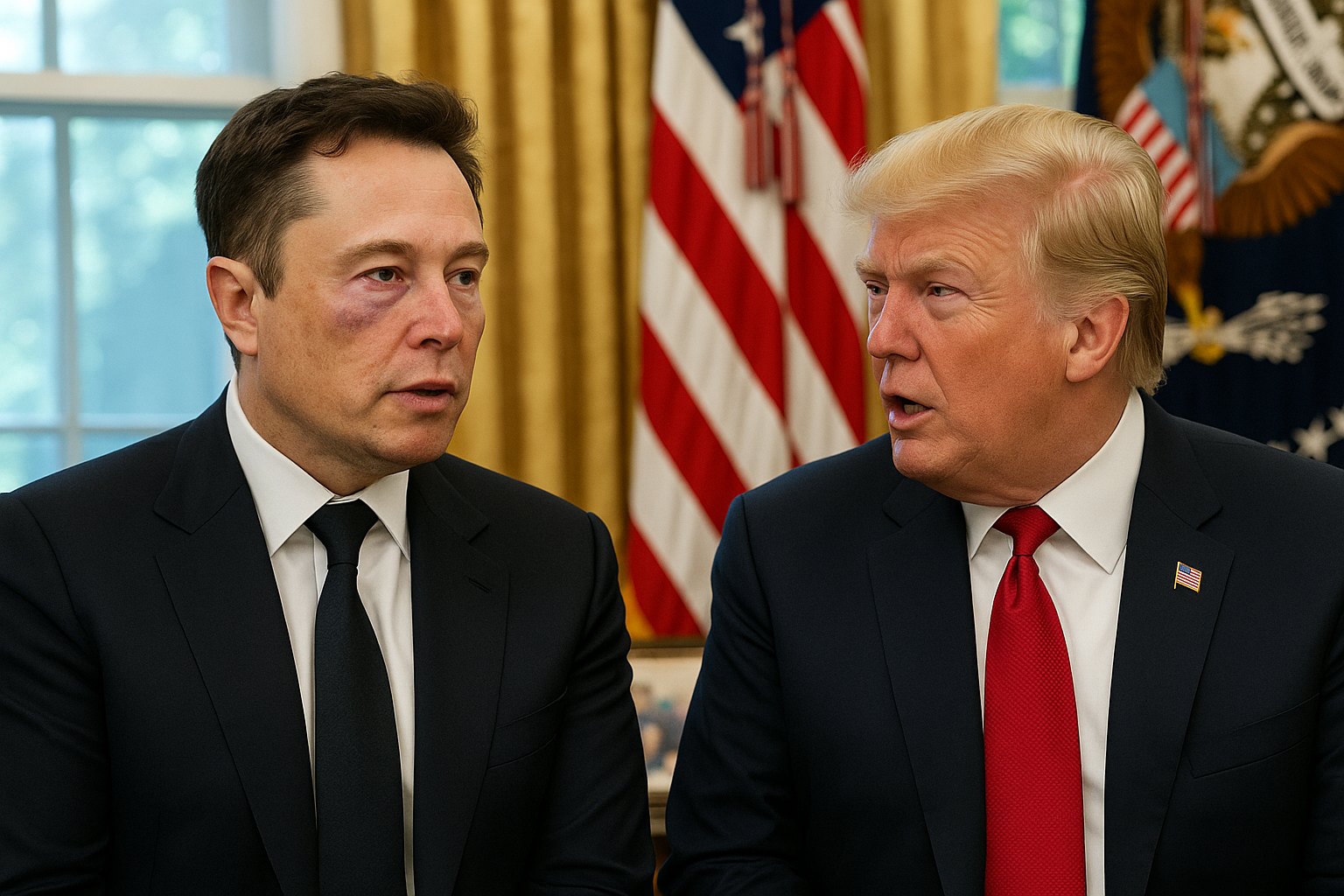 그리고 마침내 찾아온 작별의 날. 트럼프는 백악관 오벌 오피스에서 머스크를 위한 비공식 고별 행사를 열었습니다. 두 사람은 함께 사진을 찍고 서로에게 찬사를 보냈습니다. 이 자리에서 머스크는 눈가에 멍이 든 모습으로 등장해 주위를 놀라게 했는데, 트럼프는 이를 가리키며 “정부는 가끔 좀 지저분한 구석이 있어요”라고 농담을 던졌습니다.