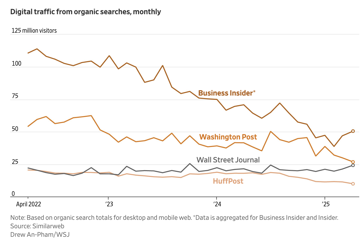- **비즈니스 인사이더(Business Insider)**는 2022년 4월과 비교해 2025년 4월의 검색 유입이 무려 55% 감소했습니다.