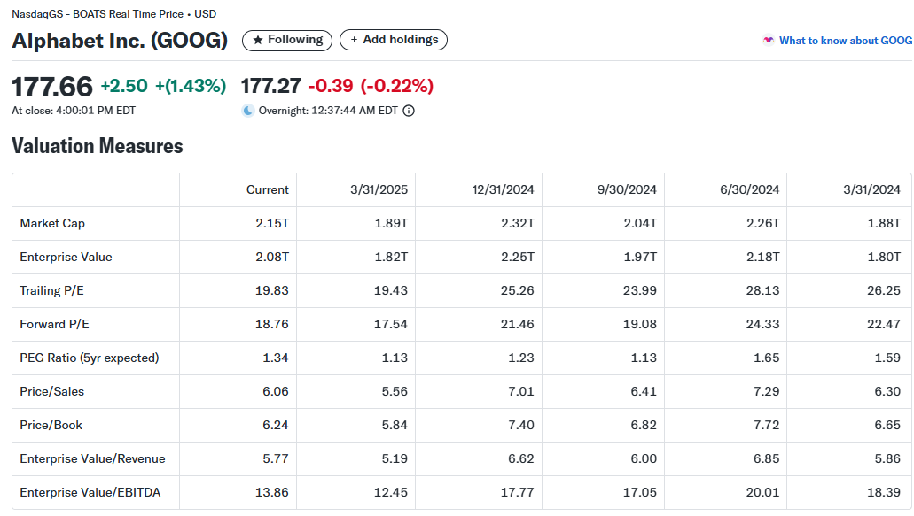 2025년 현재 알파벳의 미래 주가수익비율(PER)은 약 18배 수준으로, 이는 같은 AI 경쟁자인 마이크로소프트(32배), 아마존(32배) 대비 절반 수준에 불과합니다.