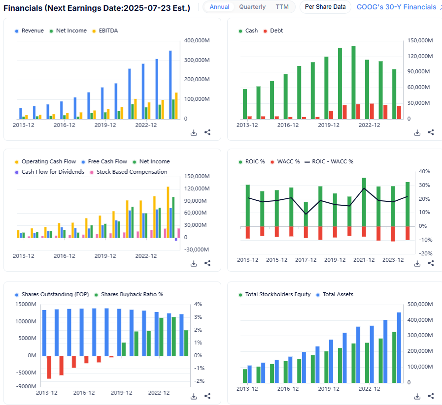 즉, 구글은 ‘불확실성’을 품고 있는 동시에, 확실한 현금 창출력과 기술 리더십을 동시에 가진 기업입니다. 그리고 현재 그 가치는 시장에서 충분히 반영되지 않고 있는 상태입니다.