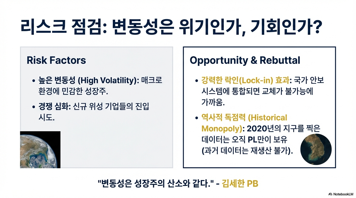 과거 팔란티어는 상장 초기에 어려움을 겪다 결국 약 1,700%에 달하는 경이적인 상승을 기록했습니다. 반면 플래닛 랩스는 현재까지 190% 상승에 그쳤습니다. 두 기업의 유사한 비즈니스 모델과 현재 플래닛 랩스가 맞이한 재무적 턴어라운드를 고려할 때, 여전히 거대한 성장 잠재력이 남아있다고 분석할 수 있습니다.
