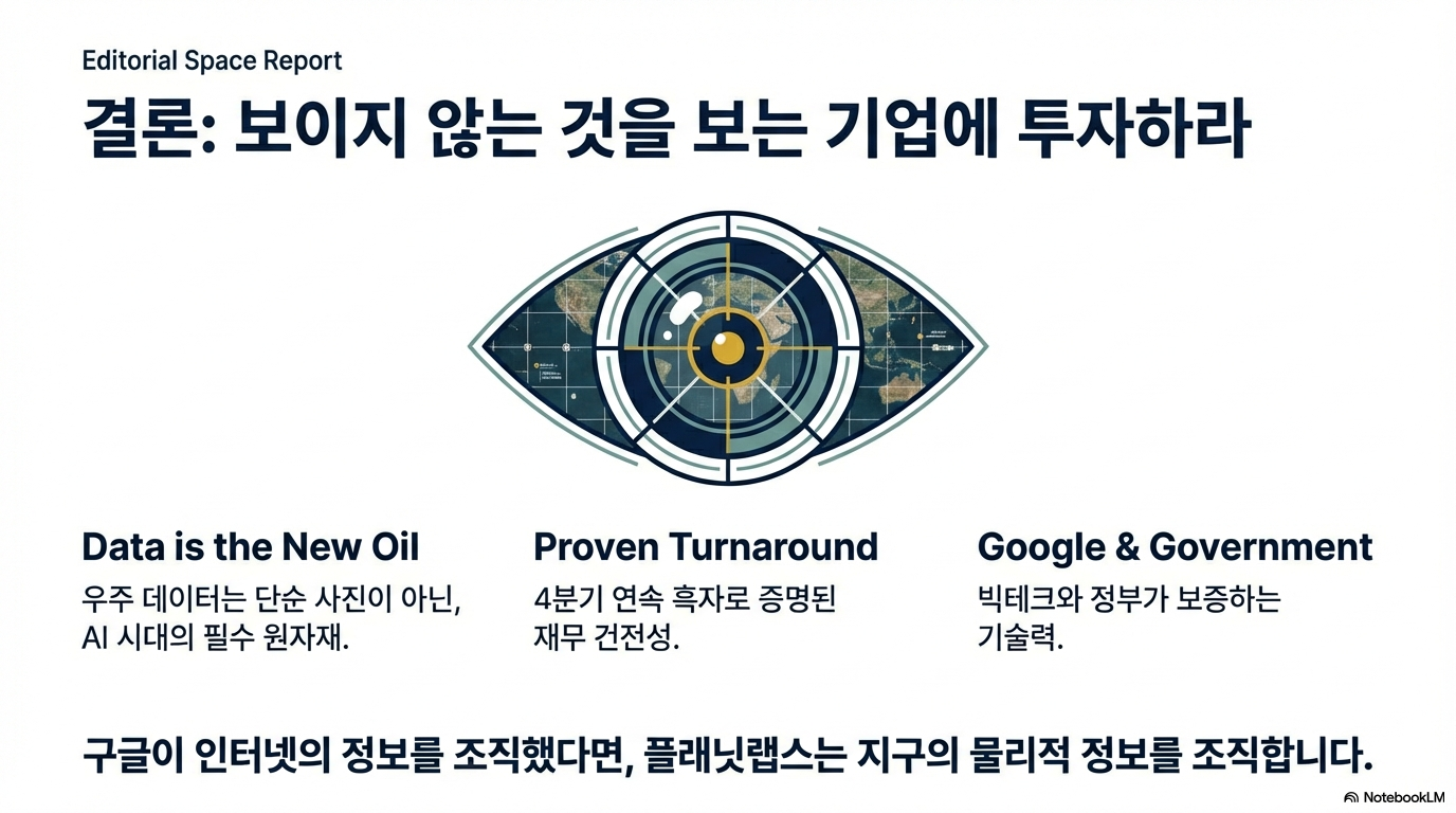 데이터가 새로운 석유로 불리는 시대, 한 기업이 행성 전체의 데이터셋을 독점한다면 세상은 어떻게 변할까요? 투자자에게 던져진 질문은 이제 '누가 데이터 제국을 건설할 것인가'가 아닙니다. 플래닛 랩스가 궁극의 하이그라운드를 장악해가는 지금, 우리는 그 제국의 탄생을 실시간으로 목격하고 있는지도 모릅니다.