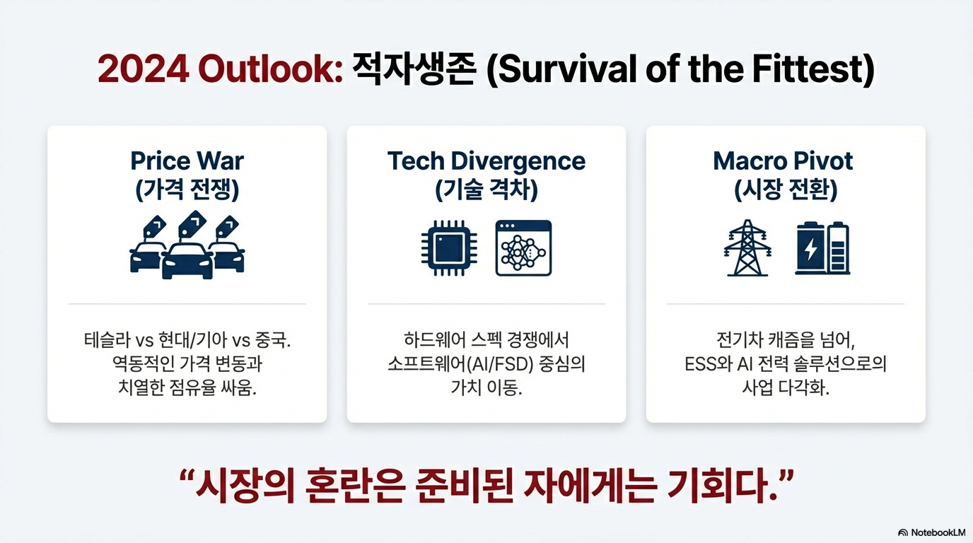 테슬라의 파격적인 가격 인하는 결코 단순한 할인 행사가 아닙니다. 그 이면에는 미-중 무역 갈등이라는 국제 정세, 한국의 보조금 정책을 꿰뚫는 치밀함, FSD 완성을 위한 데이터 확보 전략, 그리고 국내 시장의 경쟁 구도를 뒤흔들려는 공격적인 의도가 거미줄처럼 얽혀 있습니다. 이는 스스로를 'AI 로봇 기업'으로 정의하는 테슬라의 정체성이자 미래 시장의 판도를 바꾸려는 거대한 포석입니다.