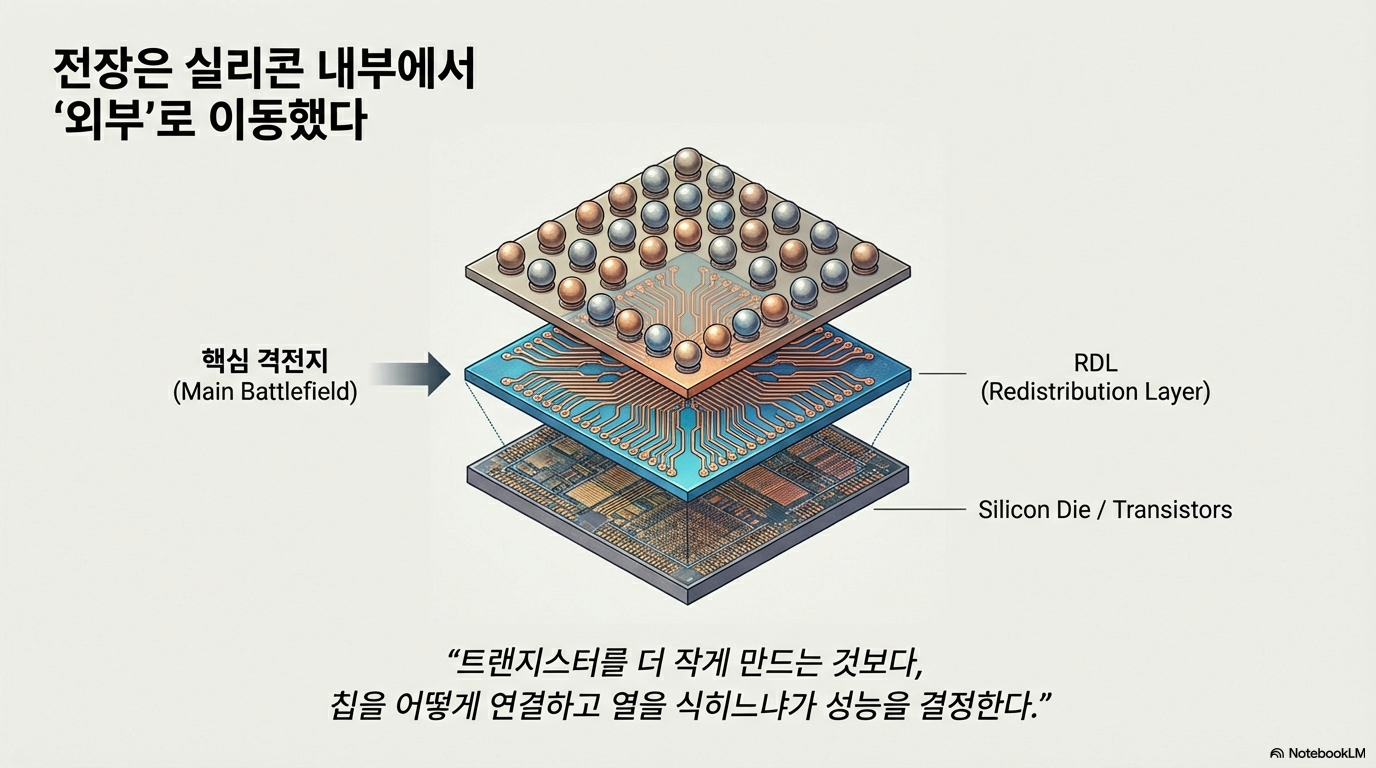 이러한 물리적 한계는 칩 설계 기업들이 성능을 높일 새로운 방법을 찾도록 강요하고 있습니다. 그리고 그 해답으로 떠오른 것이 바로 ‘첨단 패키징’입니다. 칩을 어떻게 포장하고, 여러 칩을 어떻게 효율적으로 연결하느냐가 2나노 시대의 새로운 경쟁력이 된 것입니다.