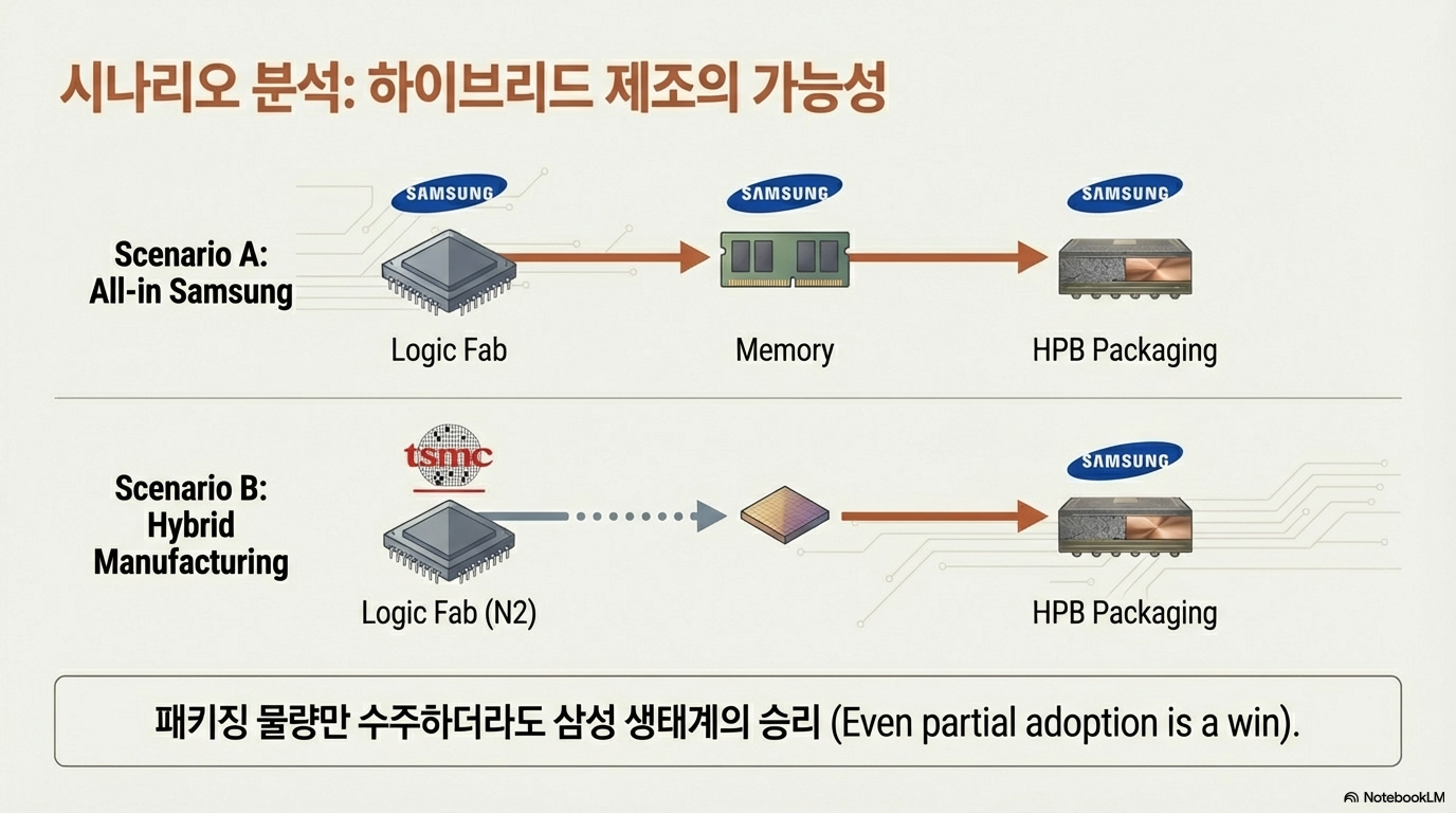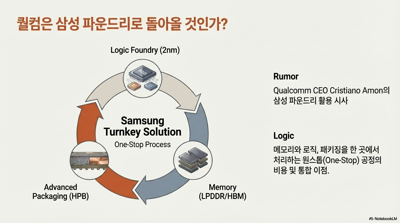 하지만 여기에 또 다른 변수가 존재합니다. 삼성은 이미 자사의 엑시노스 2600을 통해 2나노 로직 다이 제작부터 D램 적층, HPB 패키징까지 전 과정을 성공적으로 수행할 경험을 쌓게 됩니다. 이 경험을 바탕으로 퀄컴에게 매력적인 '풀코스 번들 딜'을 제안할 수도 있습니다. 이는 기업들이 각 분야에서 최고의 기술을 가진 공급업체를 조합하는, 즉 협력과 경쟁이 뒤섞인 복잡한 관계망이 형성되고 있음을 의미합니다.