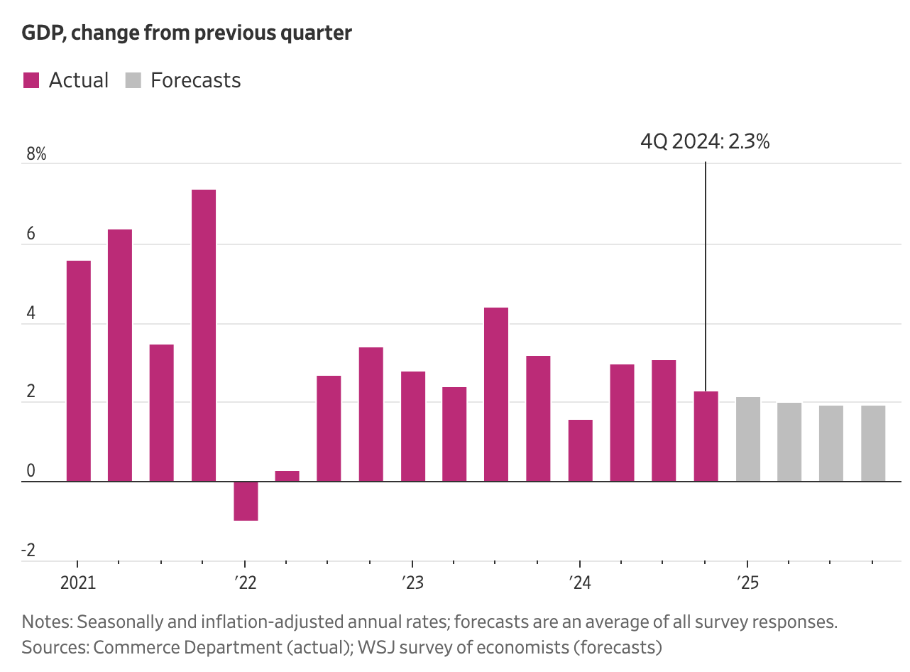 - 4분기 GDP 성장률은 2.3% 로 예상보다 낮아졌으며,