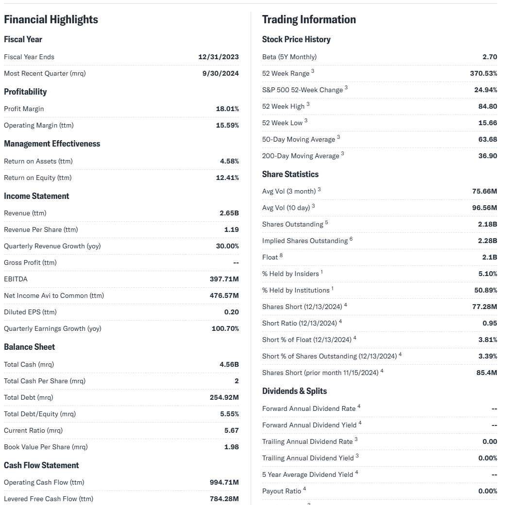 높은 P/E에도 불구하고, 팔란티어는 성장률 측면에서 여전히 흥미로운 투자 대상입니다. 현재 팔란티어의 주식은 PEG(주가수익성장비율) 기준으로 7.2배로 평가되고 있는데, 이는 같은 AI 및 기술 기업인 엔비디아(Nvidia)의 PEG 1.6배와 비교했을 때 상당히 높은 수치입니다. 그러나 여기서 중요한 점은 팔란티어가 AI 소프트웨어 분야에서 다른 기업들과 비교할 수 없는 수준의 성장 잠재력을 가지고 있다는 것입니다.