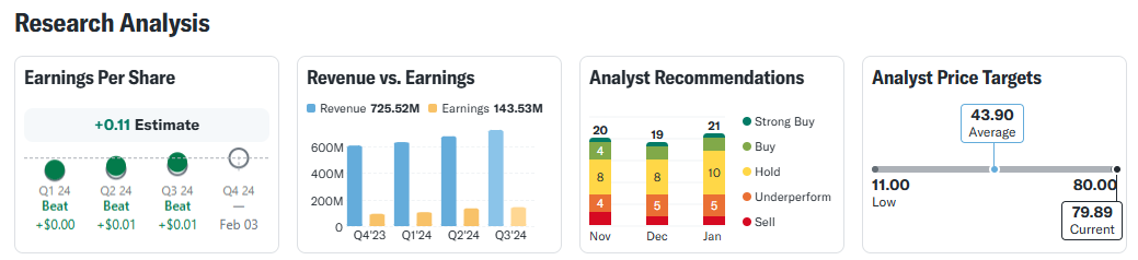 팔란티어는 SaaS 기업의 핵심 지표인 ‘룰 오브 40(Rule of 40)’에서도 뛰어난 성과를 보여줍니다. 이는 매출 성장률과 이익률의 합이 40을 초과하면 우수한 SaaS 기업으로 평가되는 기준입니다. Q3에서 팔란티어의 점수는 68로, 이 기준을 훨씬 초과했습니다.