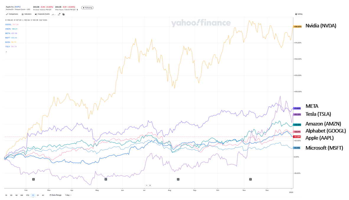 골드만삭스의 수석 미국 주식 전략가 데이비드 코스틴은 지난 몇 년간 미국 주식시장에서 매그니피센트 세븐이라 불리는 대형 기술주가 시장을 주도했지만, 2025년에는 이러한 독주 현상이 완화될 것으로 내다봤습니다. 매그니피센트 세븐(알파벳, 아마존, 애플, 메타 플랫폼스, 마이크로소프트, 엔비디아, 테슬라)의 2024년 수익률은 S&P 500의 나머지 주식보다 34%포인트 더 높았으나, 2025년에는 그 격차가 7%포인트로 줄어들 것으로 전망했습니다. 이는 대형 기술주의 실적 성장률과 시장 평균 간의 차이가 급격히 줄어들고 있기 때문이라고 분석했습니다.