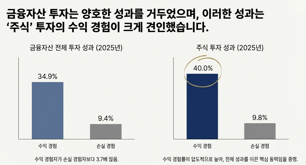 - 특히 ‘금융시장 우호 국면’에서는 위험자산 선호를 통해 시장 변동성의 방향성에도 영향을 줍니다(보고서에서도 주식 수익 경험 확대가 금융성과를 견인했다고 언급)