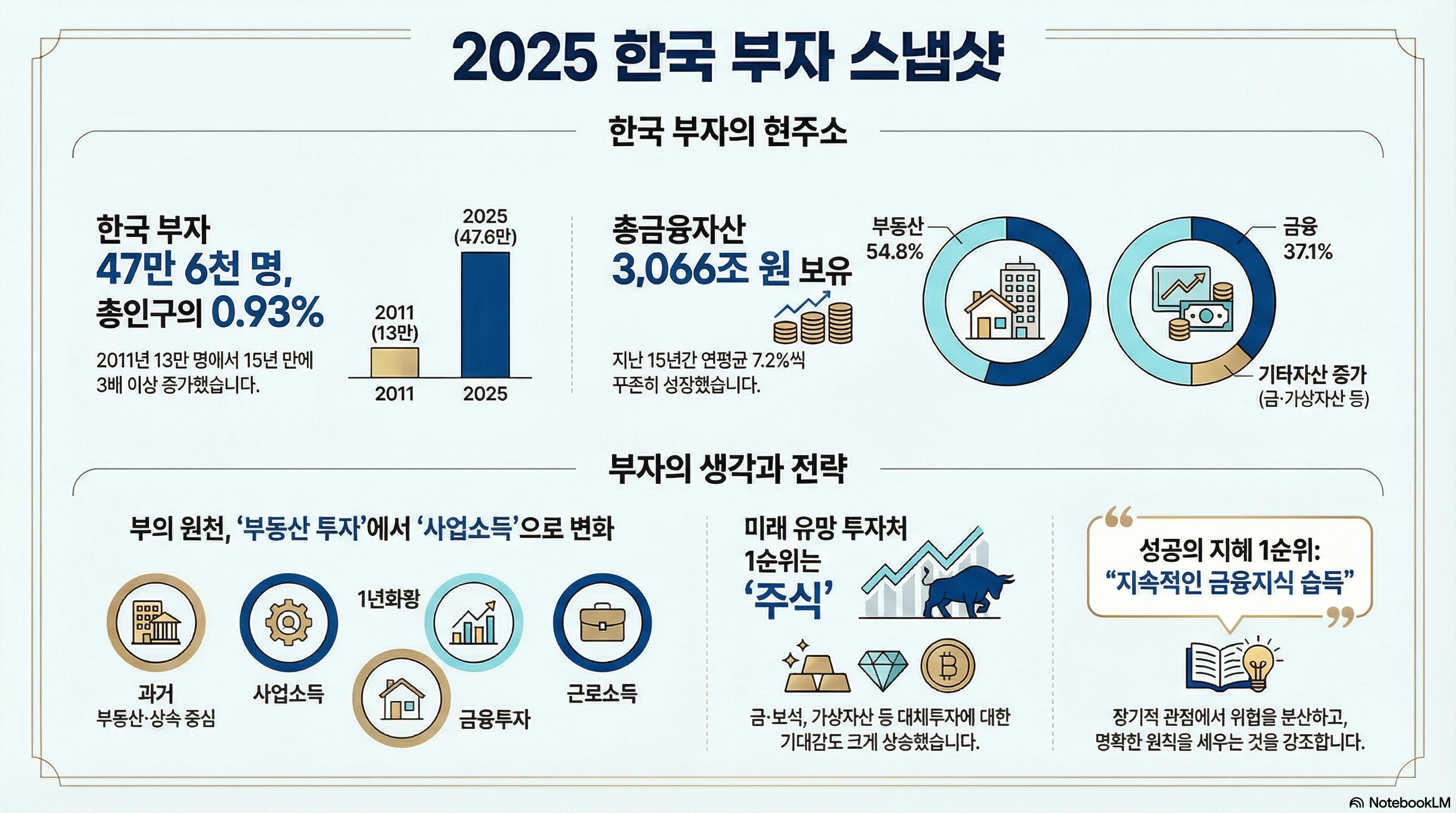 2025년 한국 부자 보고서는 부자가 되는 방법보다, 부자로 남는 방식을 보여준다.