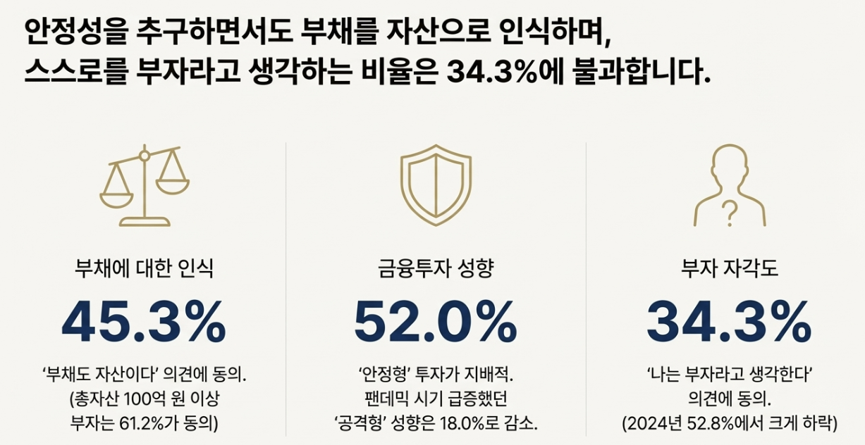 그러나 2025년 한국 부자 보고서가 보여주는 모습은 우리가 익숙하게 떠올리던 부자의 모습과는 조금 다르다.