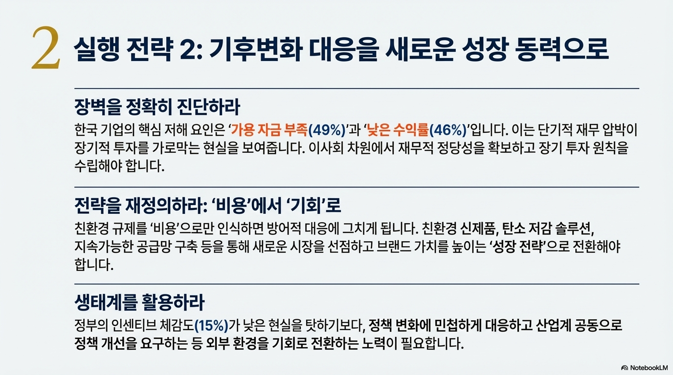 앞서 살펴본 생성형 AI 도입 후 수익성 증가율이 6%에 그쳤던 충격적인 결과는 바로 이 지점에서 설명됩니다. 혁신 활동의 부진은 AI라는 강력한 도구를 가졌음에도 이를 성과로 연결하지 못하는 구조적 한계를 드러냅니다. 이 데이터는 단순한 성적표가 아니라, 생존에 필요한 '실행 근육'을 어떤 기업들이 키우고 있는지를 보여주는 직접적인 지표입니다. 한국 기업들에게 보내는 매우 중요한 경고 신호입니다.
