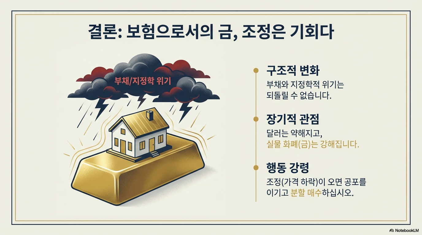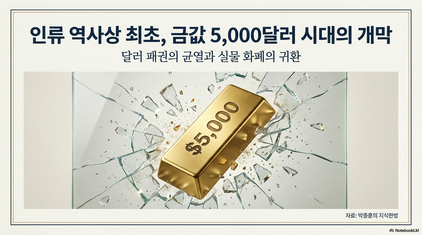 금값 5,000달러 돌파라는 가상 시나리오는 단순한 시장의 과열이 아닙니다. 이것은 수십 년간 이어져 온 달러 중심의 금융 질서가 근본적으로 흔들리고 있으며, 강대국들이 화폐의 가치를 '실물 자산'을 통해 재정의하려는 거대한 패러다임 전환의 신호탄입니다.