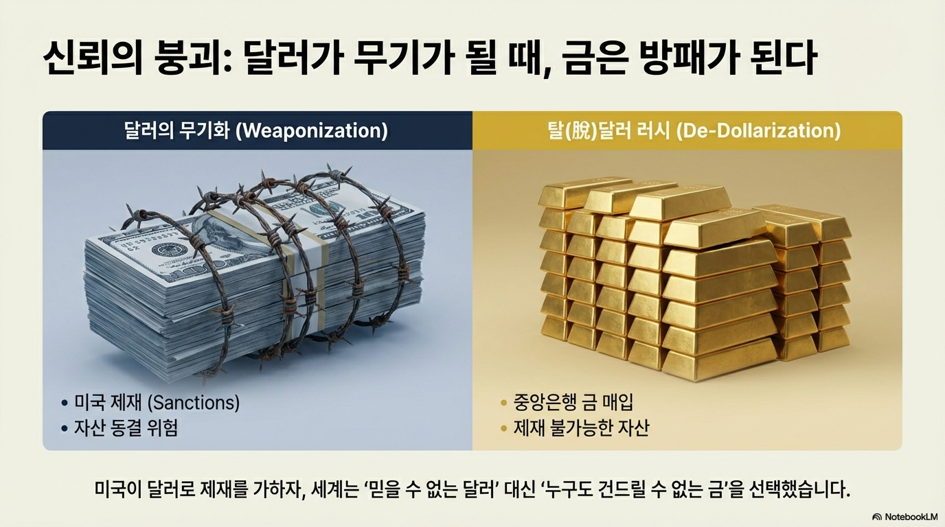 셋째, 지정학적 리스크의 증대입니다. 미국이 달러를 제재의 무기로 사용하자, 많은 국가들이 달러의 대안으로 금을 선택하기 시작했습니다. 마지막으로, 이러한 흐름의 결과로 나타난 각국 중앙은행들의 대규모 금 매입이 가격 상승에 다시 불을 붙이며 거대한 피드백 루프를 만들었습니다.