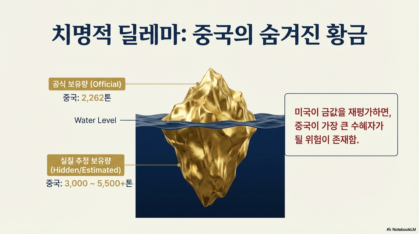 하지만 미국과 유럽 연합의 '금 재평가' 전략에는 치명적인 약점이 있습니다. 바로 아무도 정확히 모르는 '중국의 금 보유량'이라는 거대한 변수입니다.