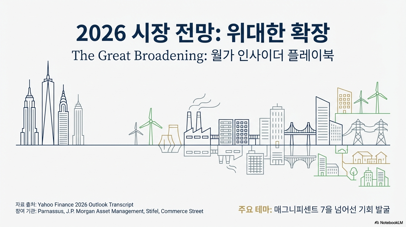'매그니피센트 7', 'AI 혁명'. 요즘 시장 헤드라인은 온통 이런 이야기로 가득합니다. 하지만 이런 표면적인 소음 아래, 대부분의 투자자가 놓치고 있는 더 깊고 놀라운 변화가 일어나고 있습니다. 이 글에서는 월스트리트 내부자들이 포착한 가장 영향력 있고 반직관적인 인사이트 5가지를 공개하여 2026년을 위한 더 명확한 시각을 제공하고자 합니다.