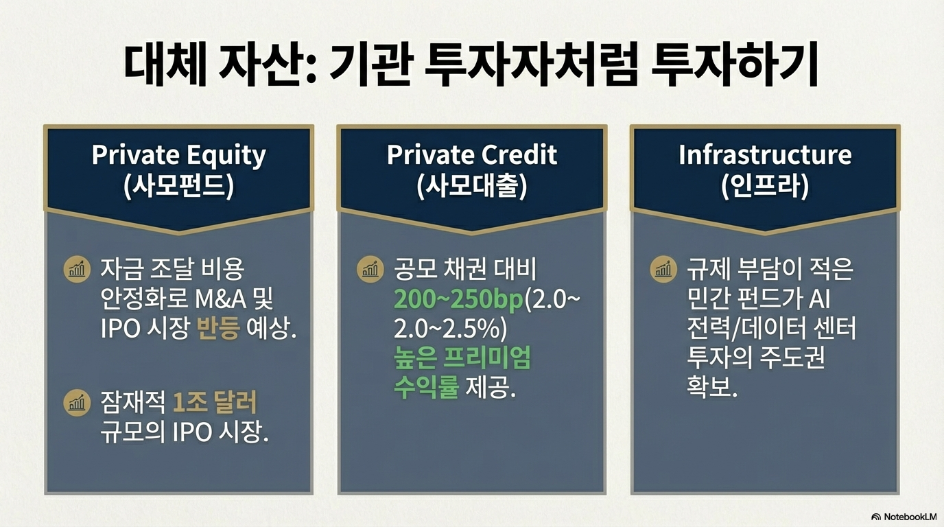 AI 테마에 투자하는 더 현명하고 덜 붐비는 방법이 있습니다. 바로 반도체 칩 제조사를 넘어선 곳에 주목하는 것입니다. 전문가들은 AI 개발의 가장 큰 병목 현상이 막대한 전력 수요라고 지적합니다. 이 문제를 해결할 핵심 주체로 사모 인프라 펀드가 떠오르고 있습니다. 이 펀드들은 AI 데이터센터에 필수적인 발전 및 송전 인프라를 직접 운영하며 기회를 잡고 있습니다.