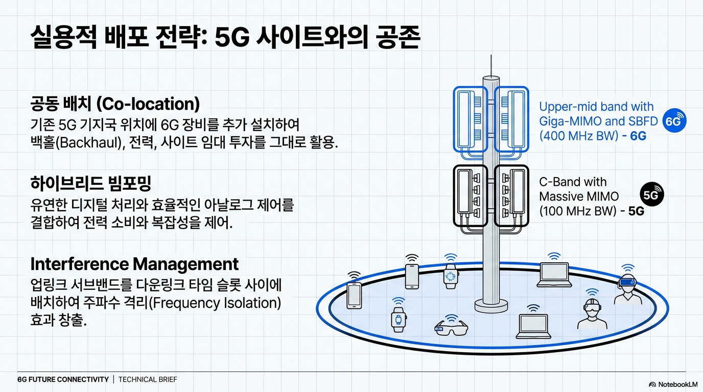 이처럼 거대한 기술 혁신에도 불구하고, 6G로의 전환은 놀라울 만큼 현실적입니다. 6G 기지국은 기존 5G 기지국과 같은 위치에 함께 설치되도록 설계되고 있습니다. 이는 통신 사업자가 기존 부지, 백홀, 전력 등 값비싼 인프라 투자를 그대로 활용하며 비용 효율적으로 네트워크를 업그레이드할 수 있음을 의미합니다.