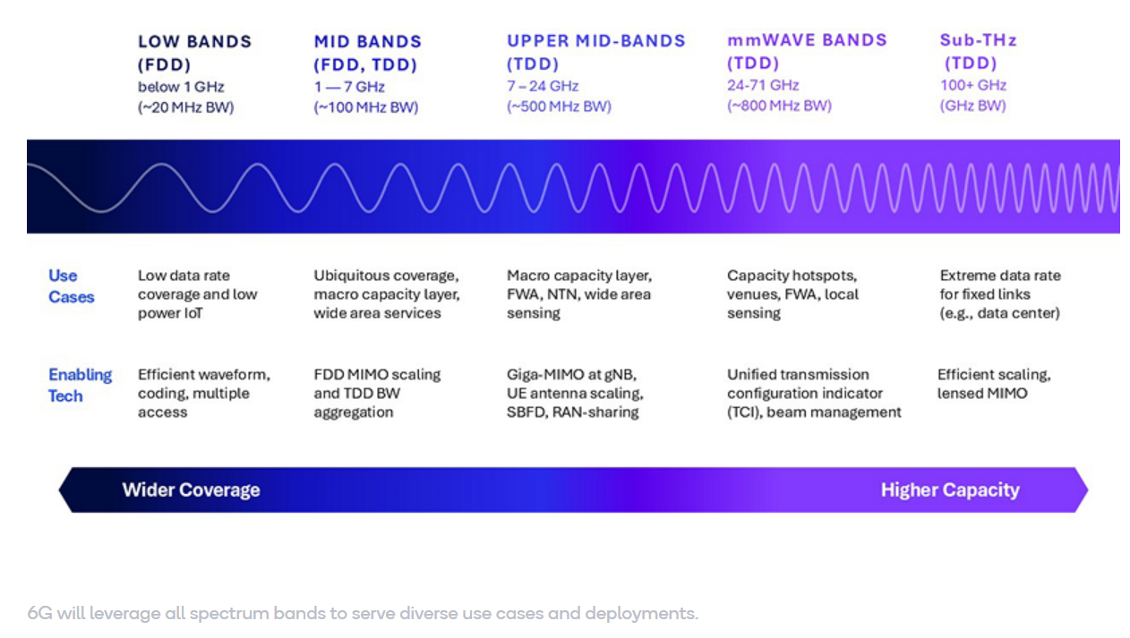 6G는 또한 기존 대역의 활용도를 개선할 기회를 제공합니다. 다음은 대역별 혁신 사항입니다: