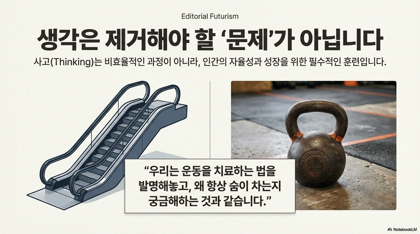 우리는 흔히 '생각하는 수고로움'을 제거해야 할 문제로 취급합니다. 하지만 생각은 제거해야 할 질병이 아니라 단련해야 할 근육입니다.