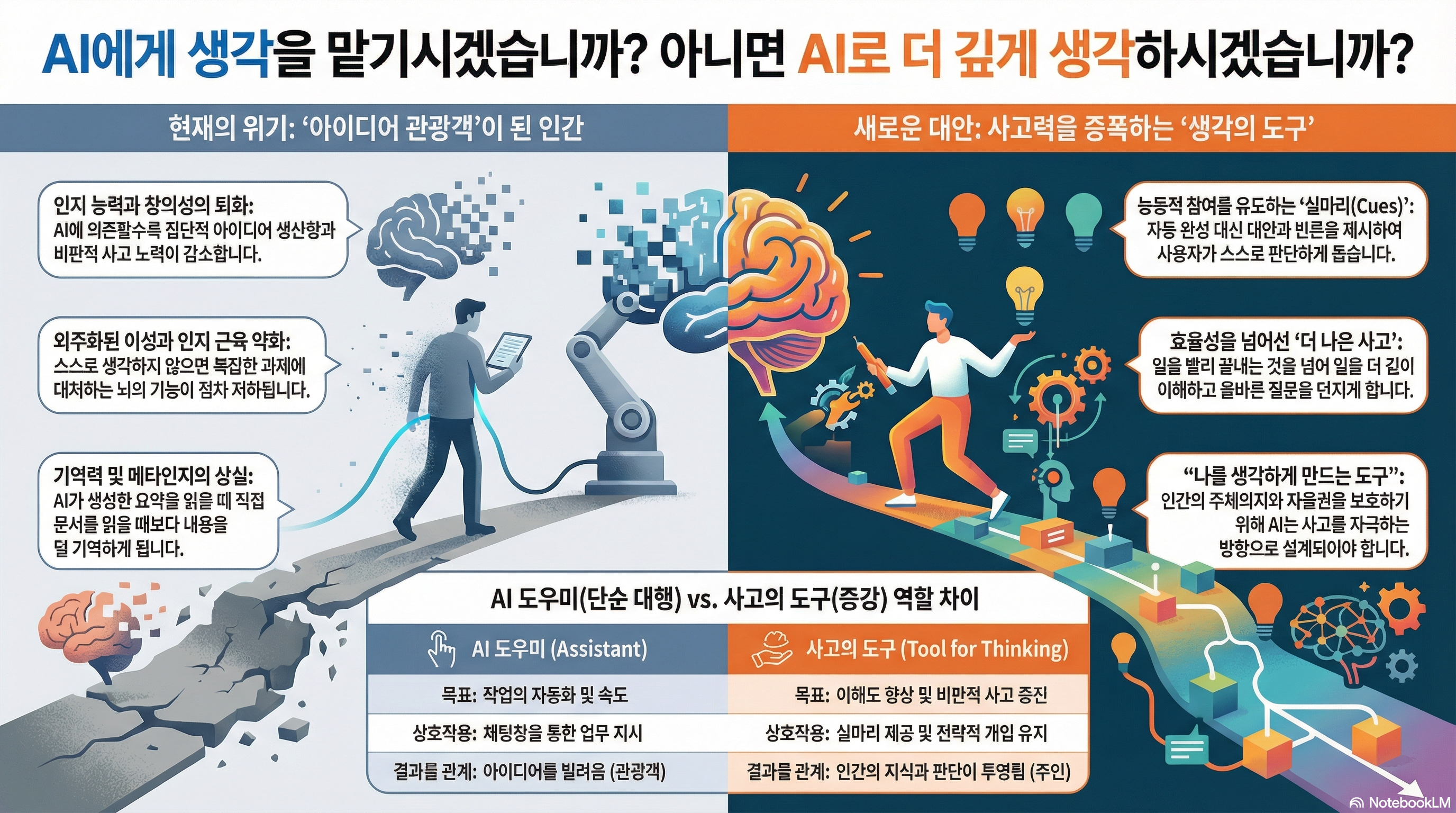 "당신이 사용하는 AI는 당신을 위해 대신 생각하는 도구입니까, 아니면 당신을 더 깊게 생각하게 만드는 도구입니까?"