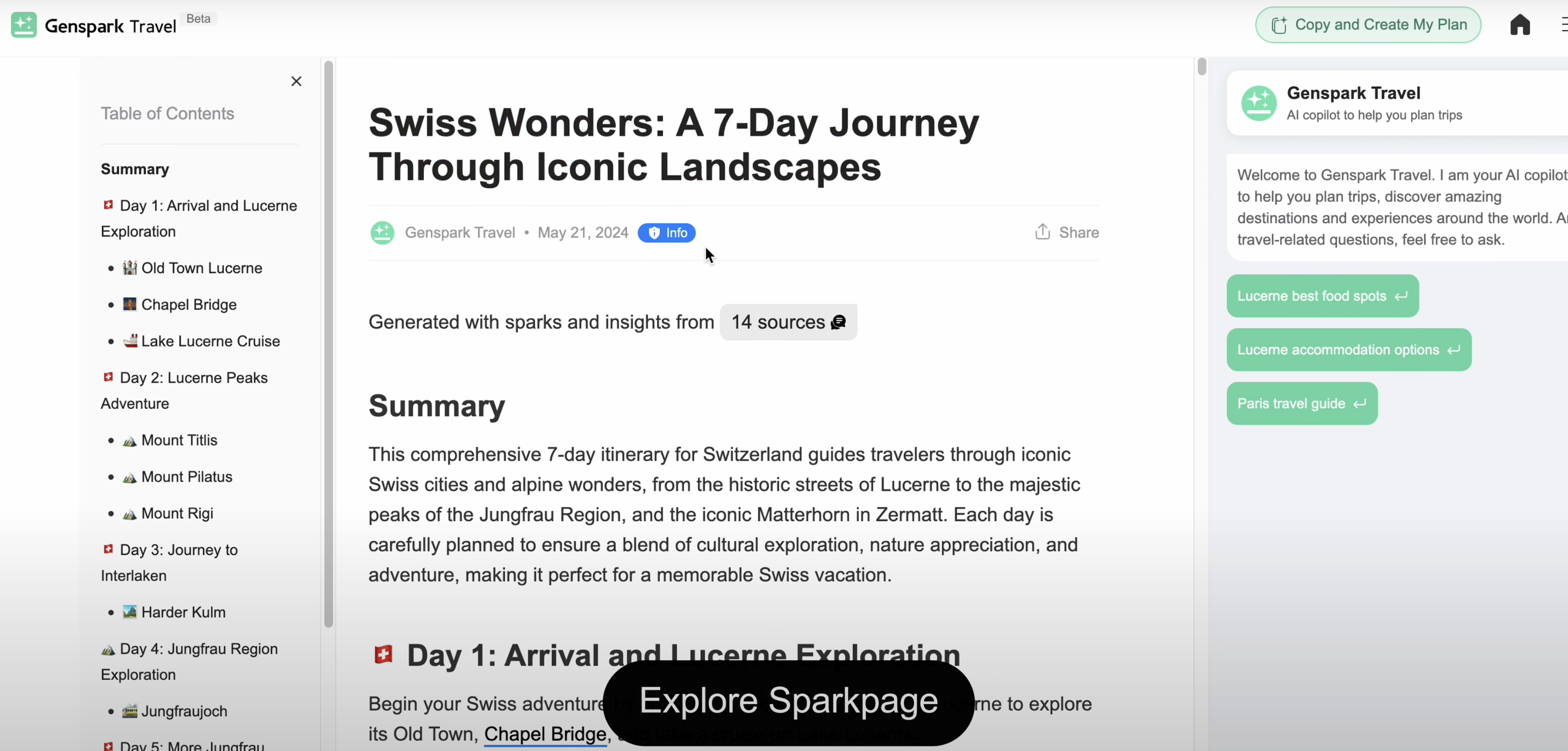 ✔️ Sparkpage: AI 코파일럿이 사용자의 관심사에 맞게 일정과 장소를 자동 추천