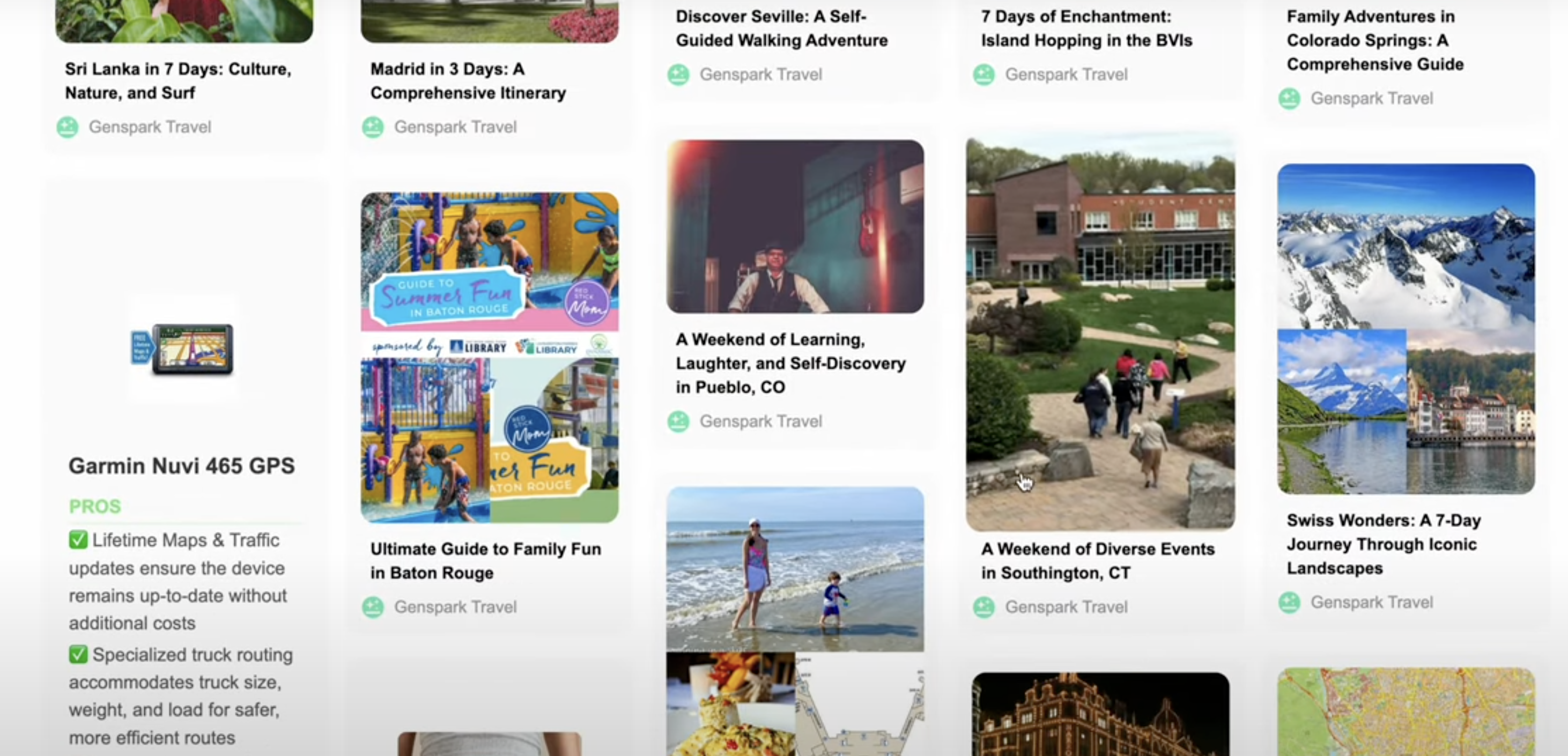 예를 들어, 여행 관련 Sparkpage를 검색했을 때