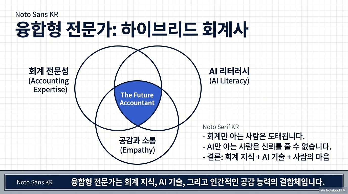 이제 회계사는 데이터를 '만드는 사람'이 아니라, AI가 생산한 방대한 데이터 속에서 비즈니스의 맥락을 짚어내는 '전략적 파트너'가 되어야 합니다.