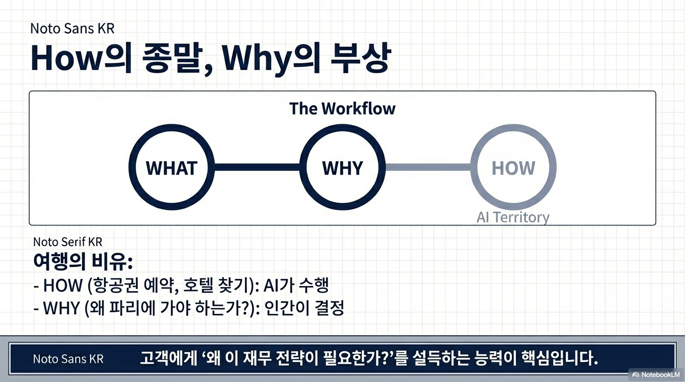 과거에는 '어떻게(How)' 처리하느냐가 중요했다면, AI 시대에는 '무엇을(What)' 해야 하며, '왜(Why)' 그 가치가 중요한지를 설득하는 통찰력이 경쟁력의 핵심입니다.