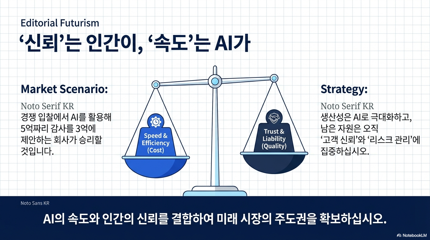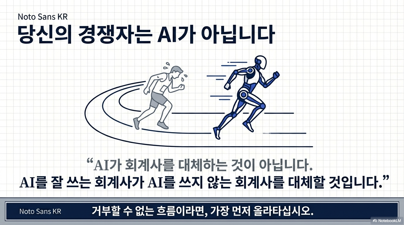 AI가 모든 질문에 답을 내놓는 것처럼 보이는 시대, 당신은 AI라는 파도를 타고 고객의 마음을 읽어내는 '가치 있는 질문'을 던지는 회계사가 되겠습니까? 기술은 도구일 뿐, 마지막 도장을 찍는 것은 언제나 인간의 확신과 책임입니다.