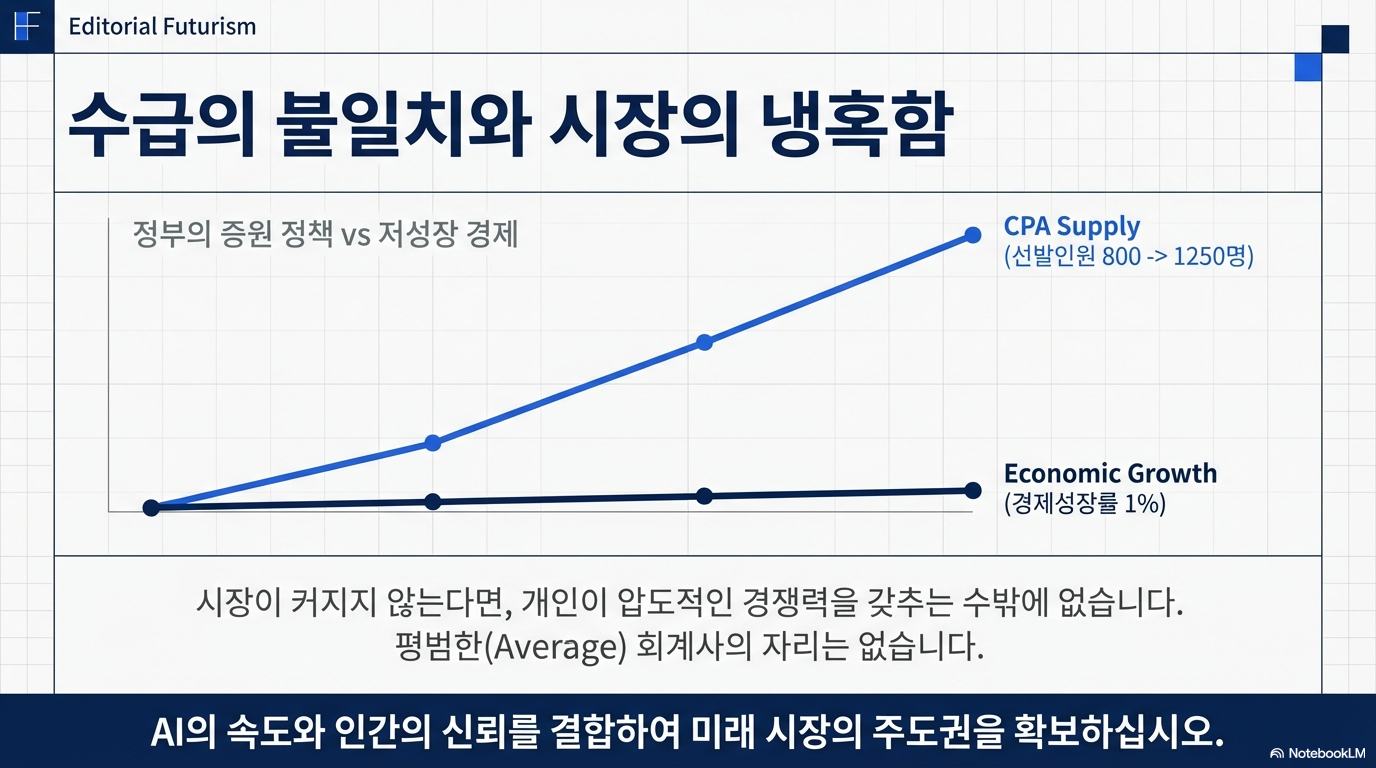 하지만 우리가 주목해야 할 지점은 '대체'라는 공포가 아니라 '전문직 정체성의 재정의'입니다. AI라는 도구를 장착한 회계사가 어떻게 더 고차원적인 가치를 창출하며 '신뢰 자본'의 관리자로 거듭날 수 있는지, 그 생존 전략을 짚어봅니다.