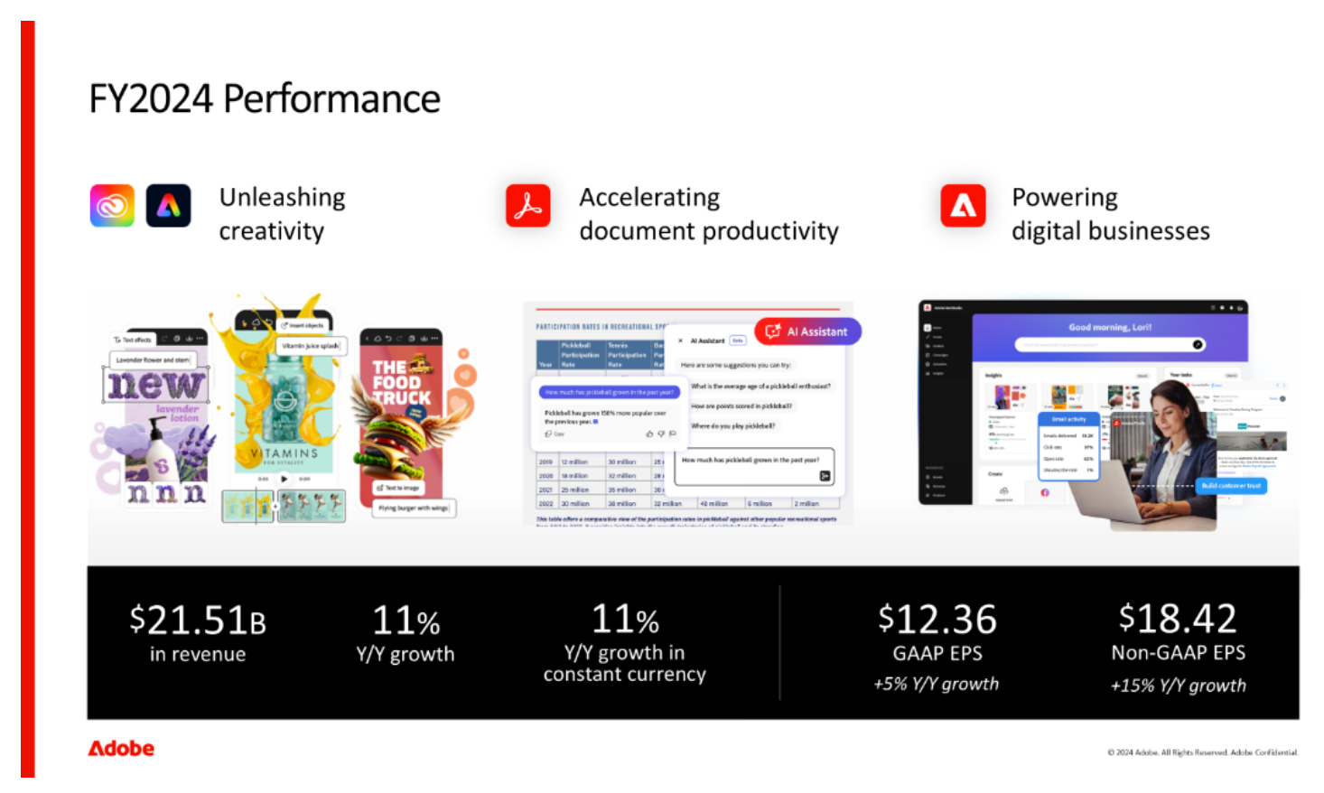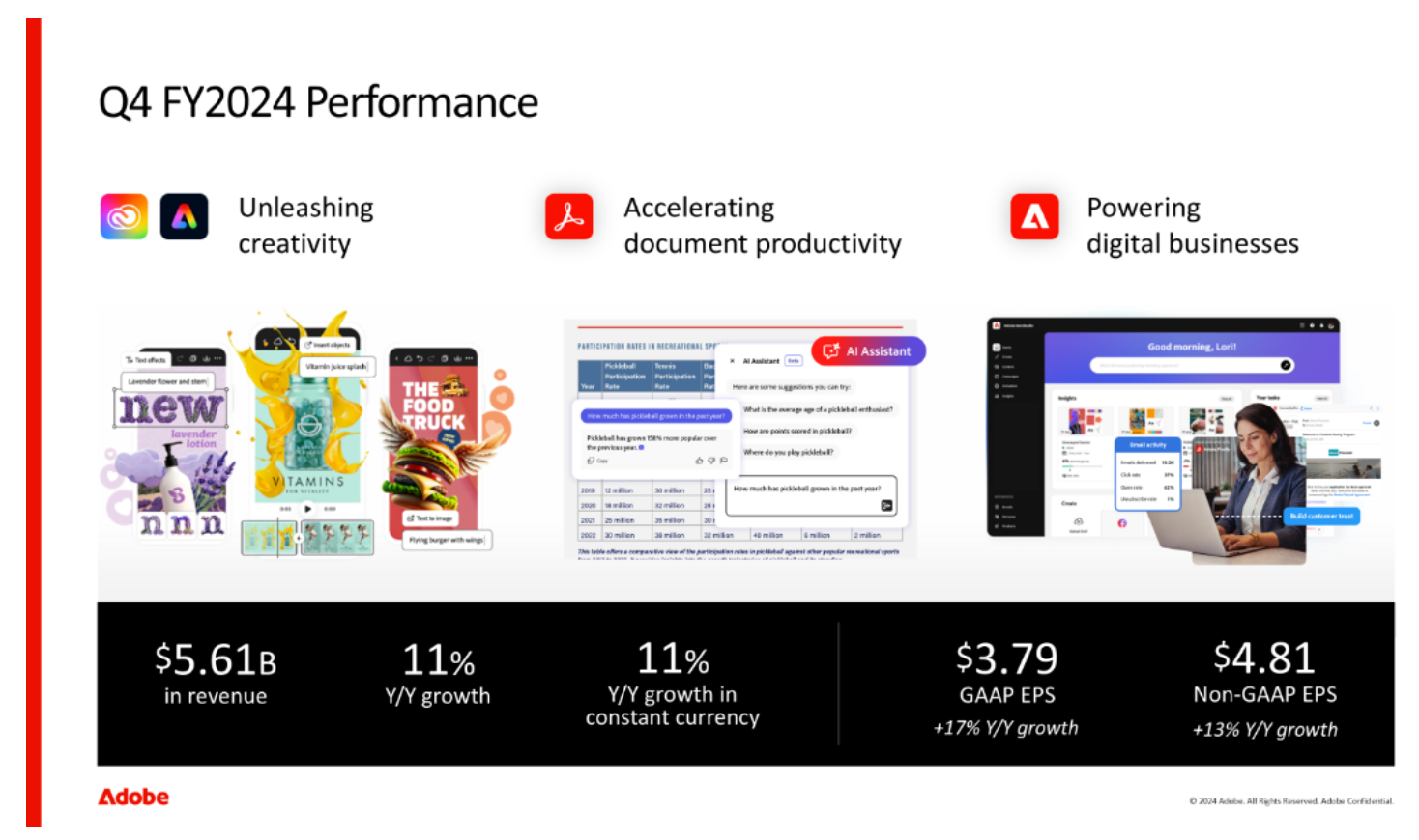 기업들의 AI 도입이 가속화됨에 따라, 어도비의 경험 클라우드 또한 빠르게 성장하고 있습니다. 특히, AI 기반 개인화 마케팅 도구는 많은 기업이 디지털 광고 및 고객 분석을 최적화하는 데 필수적인 요소로 자리 잡았습니다.