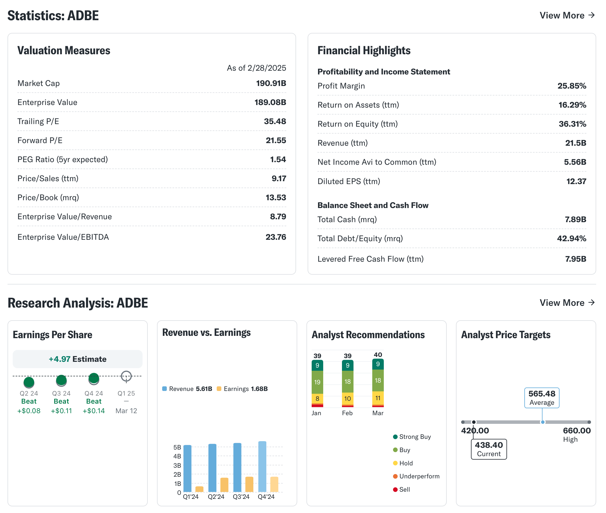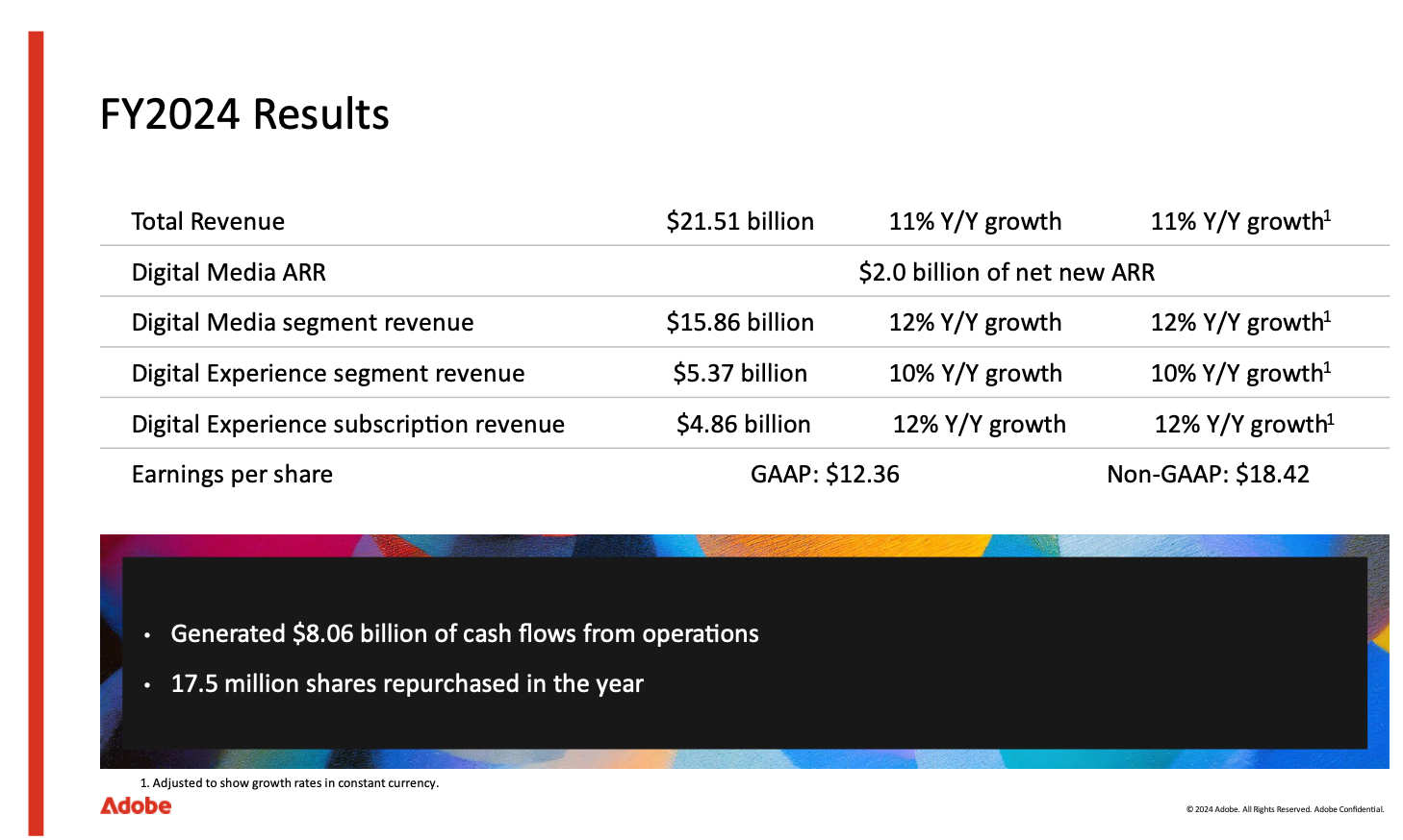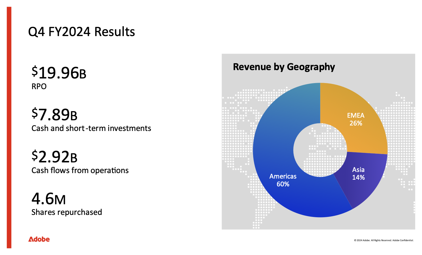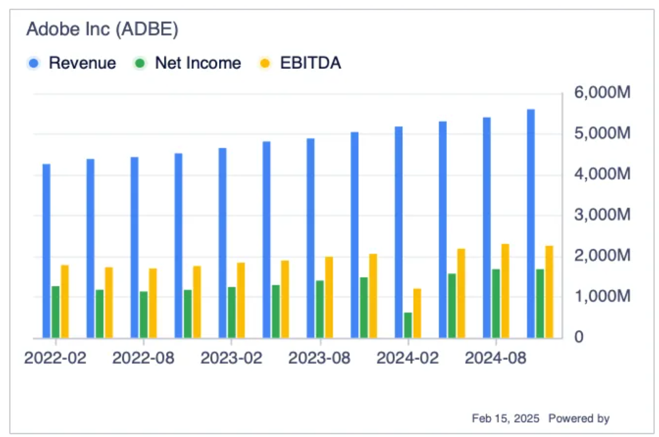 즉, 현재 어도비의 주가 하락은 실적 악화 때문이 아니라, 시장의 과도한 반응에서 비롯된 저평가 현상으로 볼 수 있습니다.