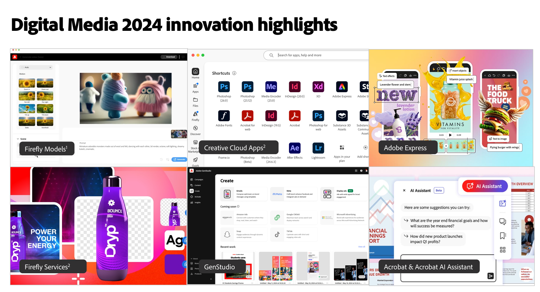 특히 어도비 파이어플라이(Firefly), 애크로뱃 AI 어시스턴트, 경험 클라우드(Experience Cloud)의 AI 기반 데이터 분석 도구 등이 큰 역할을 하고 있습니다.