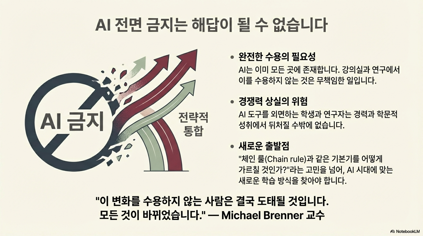 하버드 공학 및 응용과학 대학의 마이클 브레너(Michael Brenner) 교수는 AI의 등장이 응용 수학 교육의 패러다임을 완전히 바꾸어 놓았다고 증언합니다. 그가 오랫동안 내왔던 고난도 문제들을 AI(Gemini 등)에게 입력하자, AI는 순식간에 정답을 도출해냈습니다. 이는 전통적인 '정답 찾기'식 교육의 종말을 의미했습니다.