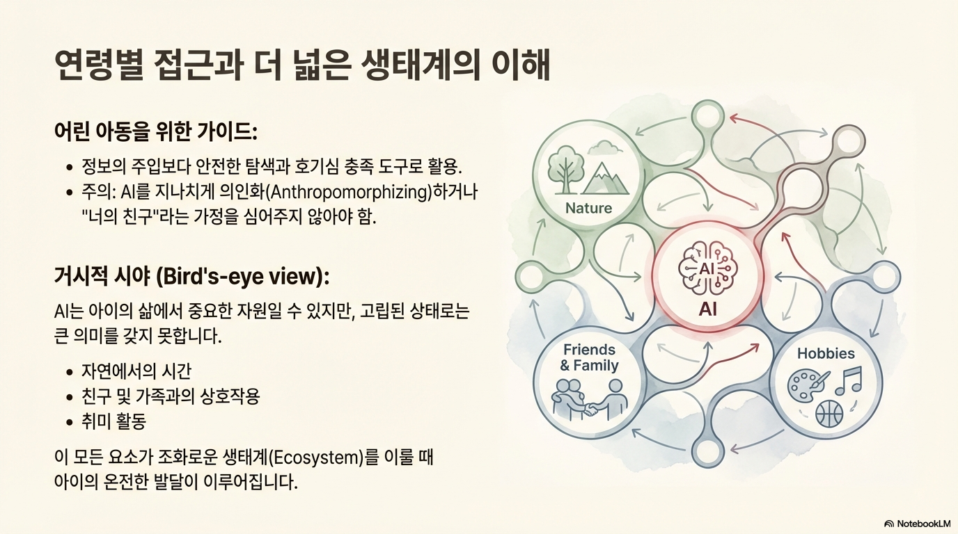 AI는 교육 생태계의 혁신적인 도구이지만, 그것이 아이들의 성장을 결정짓는 전부는 아닙니다. 잉 쉬 교수의 조언처럼, 아이들의 발달에는 가족, 친구, 자연에서의 경험, 그리고 개인적인 취미 생활이 AI만큼이나, 혹은 그보다 더 중요한 역할을 합니다. AI는 그 거대한 ecosystem의 일부일 뿐입니다.