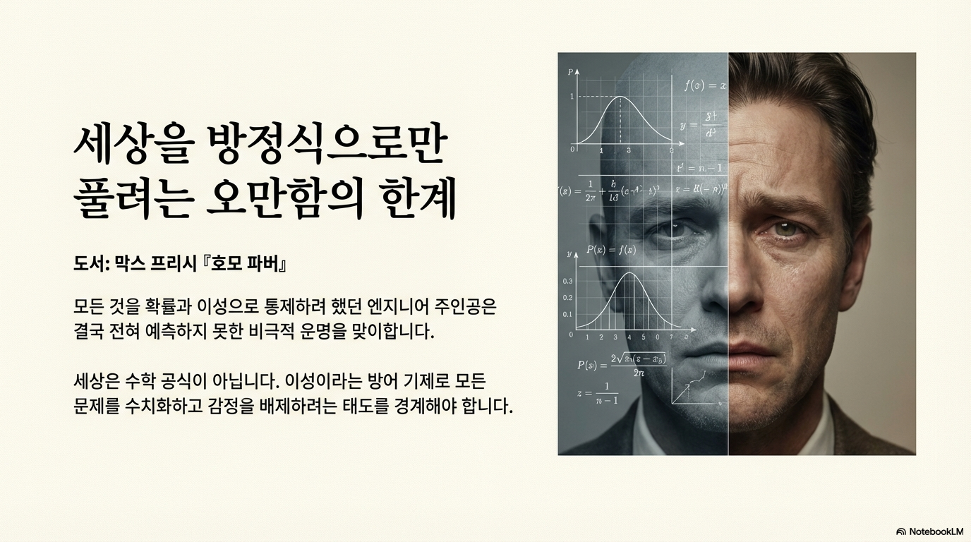 현재 실리콘밸리의 기술 만능주의자들은 세상을 수학 방정식과 확률로 해결하려 합니다. 그들은 스스로를 '호모 파버(기술적 인간)'로 정의하며, AI를 통해 모든 문제를 통제할 수 있다고 믿습니다. 하지만 김대식 교수는 이들을 '진흙탕에서 굴러본 적 없는, 어른이 되지 못한 소년들'이라 비판합니다.
