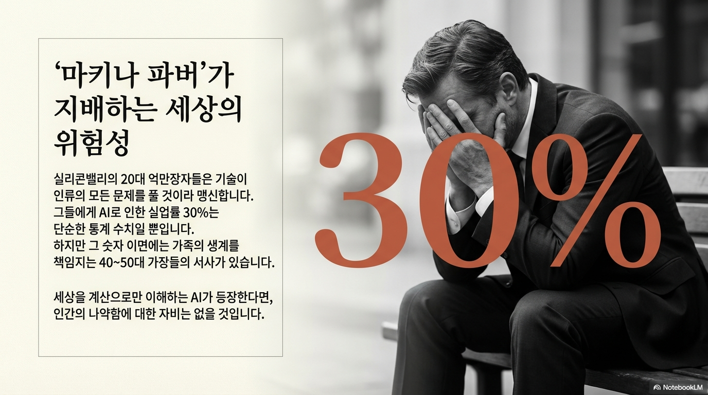 세상은 숫자로 환원되지 않는 '운명'과 '변수'로 가득 찬 곳입니다. AI가 정보를 만드는 단계를 넘어 실행에 옮기는 '마키나 파버(Machina Faber)'로 진화할수록, 우리는 더욱 냉정해질 기술적 시선에 경종을 울려야 합니다. 일자리 상실을 단순한 '통계적 수치'로만 바라보는 자비 없는 기술은 인류에게 축복이 아닌 재앙이 될 수 있습니다.
